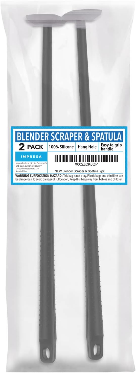 The IMPRESA Silicone Blender Spatula & Jar Scraper is an essential tool for your kitchen, offering unparalleled functionality and efficiency. Crafted to enhance meal preparation, this 14-inch spatula is particularly useful during colder months when warm soups and hearty smoothies are a staple. Its elongated design allows it to reach deeply into jars and blenders, ensuring no ingredient is wasted. This versatile kitchen accessory is perfect for busy individuals and families who seek reliable tools for everyday cooking. Whether you’re whipping up a smoothie blender breakfast or concocting a savory sauce, this spatula is designed to maximize your recipe yield. The durable silicone construction is both heat-resistant and non-stick, making it easy to clean—simply place it in the dishwasher or wipe it by hand. The ergonomic handle provides a comfortable grip, allowing for safe and effective scraping of containers without risk of injury from sharp edges. Its flexible design makes it capable of reaching beneath blender blades and into tight corners, minimizing food waste and ensuring a thorough clean. Suitable for use with a variety of kitchen gadgets, from food processors to smoothie blenders, this spatula proves invaluable in any culinary setting. This product includes two pieces, ensuring you always have one ready for use while the other is being cleaned. Ideal for scraping condiment bottles and jars, the spatula also serves as an excellent under blade bottle scraper. Its non-scratch surface is gentle on all types of kitchen surfaces, making it a versatile addition to your utensil collection. Whether you are an experienced chef or just someone looking to simplify your kitchen routine, the IMPRESA Silicone Blender Spatula & Jar Scraper is a must-have kitchen essential. Its multiple applications and ease of use make it a practical investment for anyone looking to enhance their culinary experience.