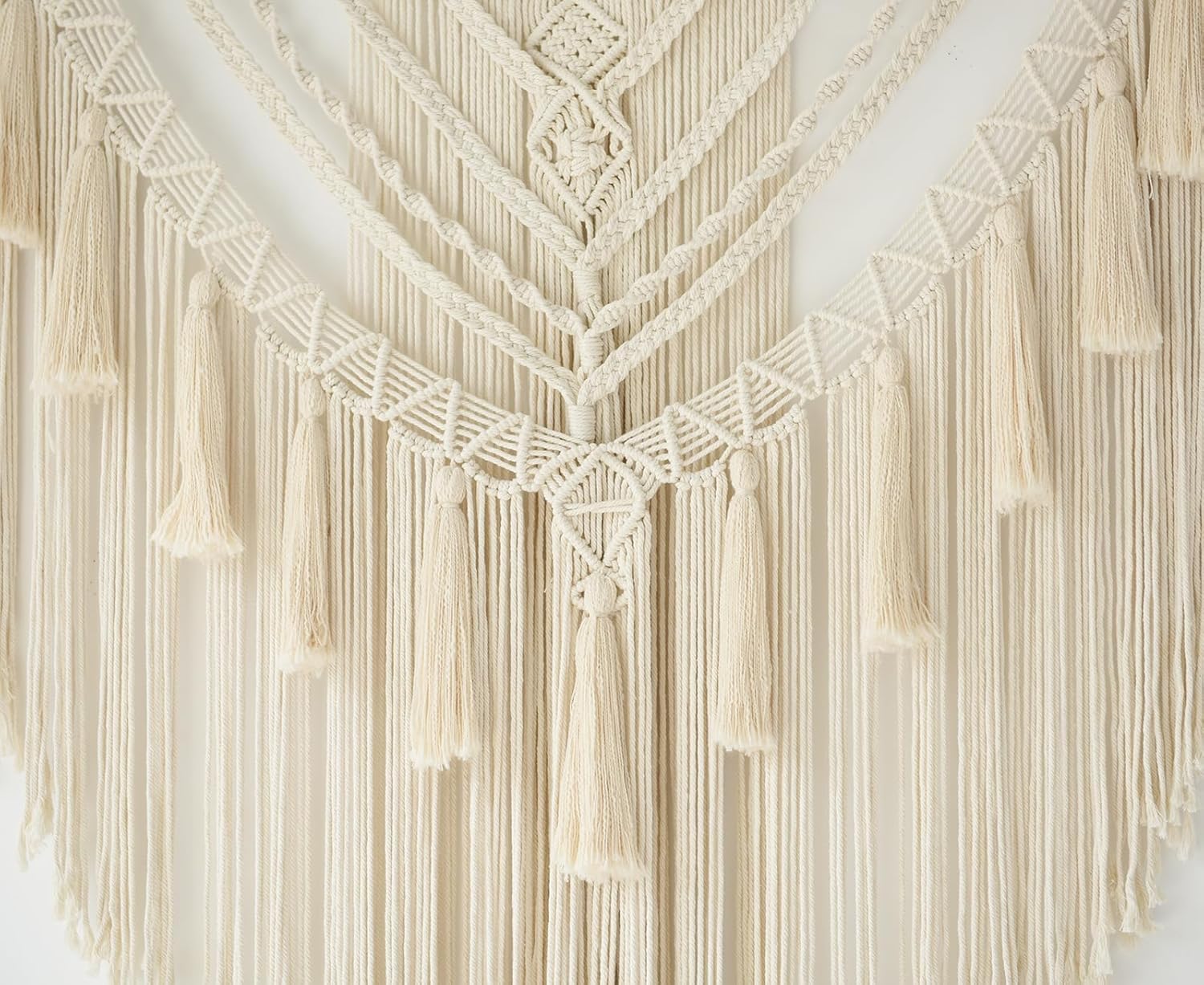 Features: – A unique handwoven large macrame wall hanging ,so may have slight variations in size. -macrame wall hanging is carefully handcrafted with 100% cotton rope and geometric with tassels.