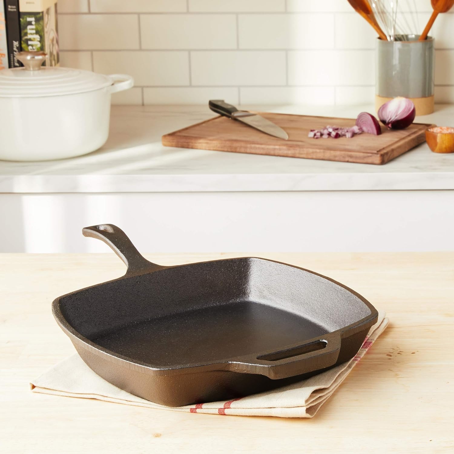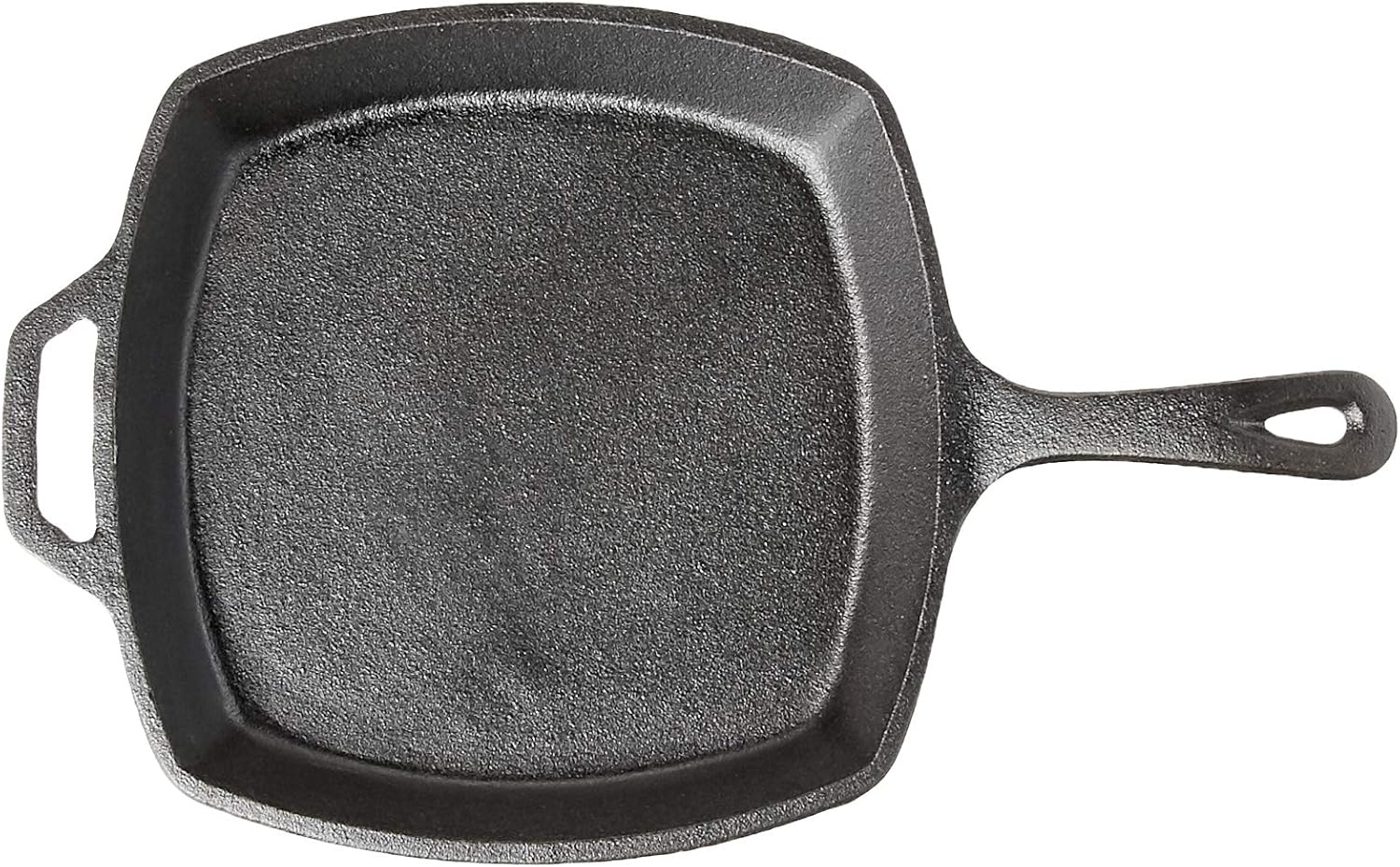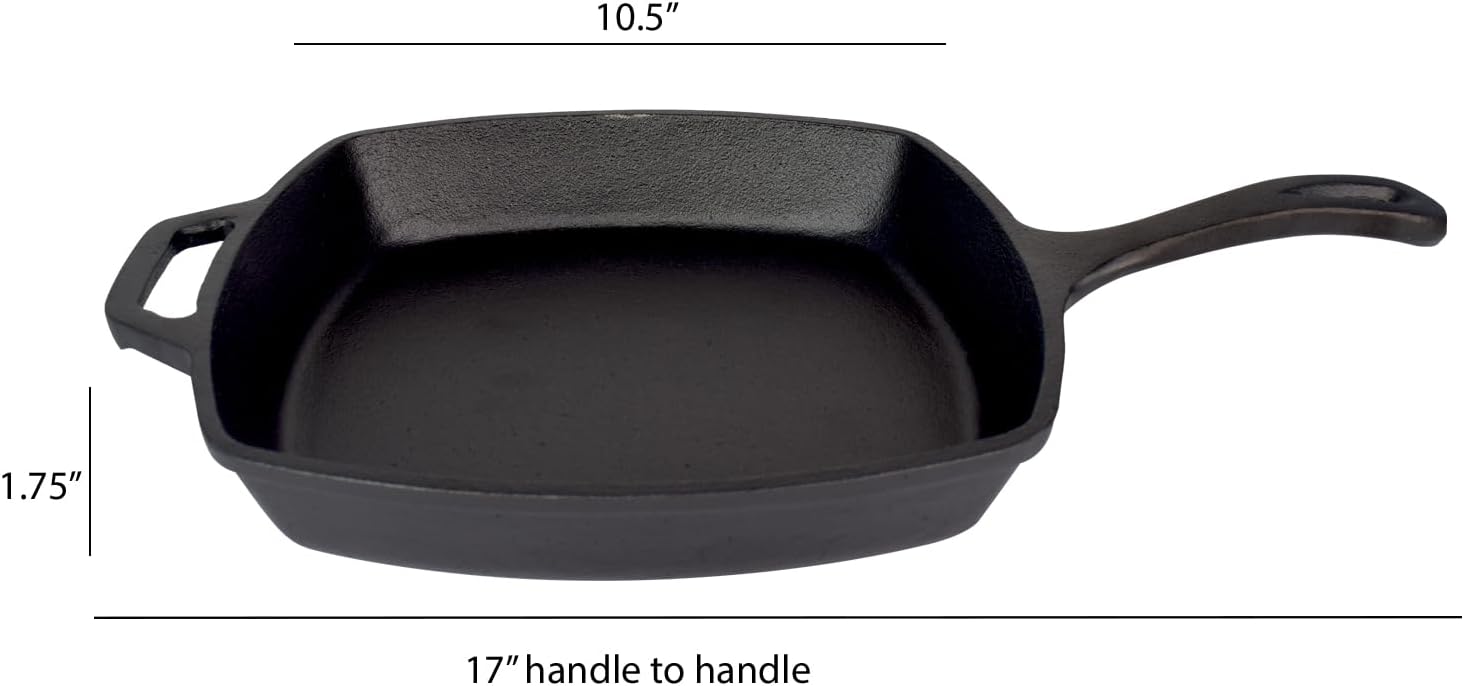 Jim Beam JB0217 10.5″ Pre Seasoned Cast Iron Square Skillet for Grill, Gas, Oven, Electric, Induction and Glass, Black