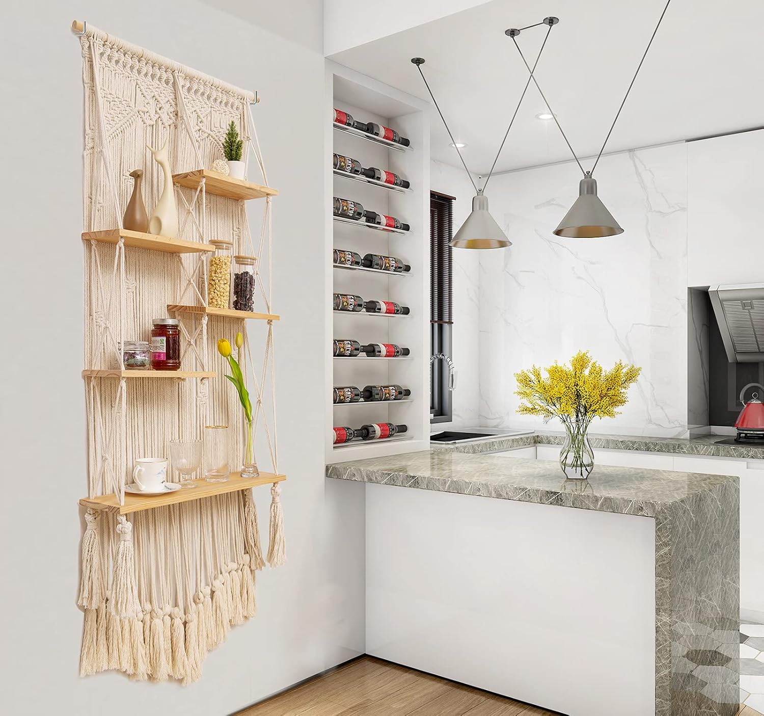 ❤Suitable for various spaces: Best boho decor for living or dining room, kitchen, plant room, indoor gardens, porch or bathroom, sunroom, even outside. Create an eye-catching accent on your wall with this boho floating shelf. Whether it be your favorite indoor plant, figurine, a picture on a frame, or memorabilia from your last trip, this macrame wall plant shelf will certainly be a great platform to show them off.