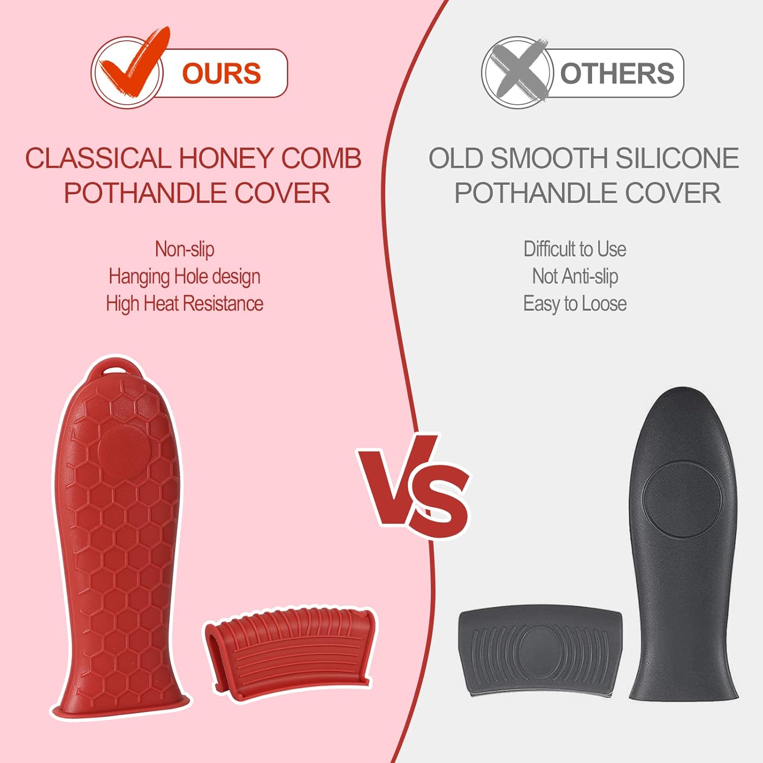 NON-SLIP DESIGN – Cast iron pan handle covers offer a secure, comfortable grip when handling hot cookware on the stovetop. The hot handle cover holder fits snugly against your cast iron frying pan, specially designed anti-slip texture, and internal silicone ribbing design for more security when moving heavy hot pots and pans.
