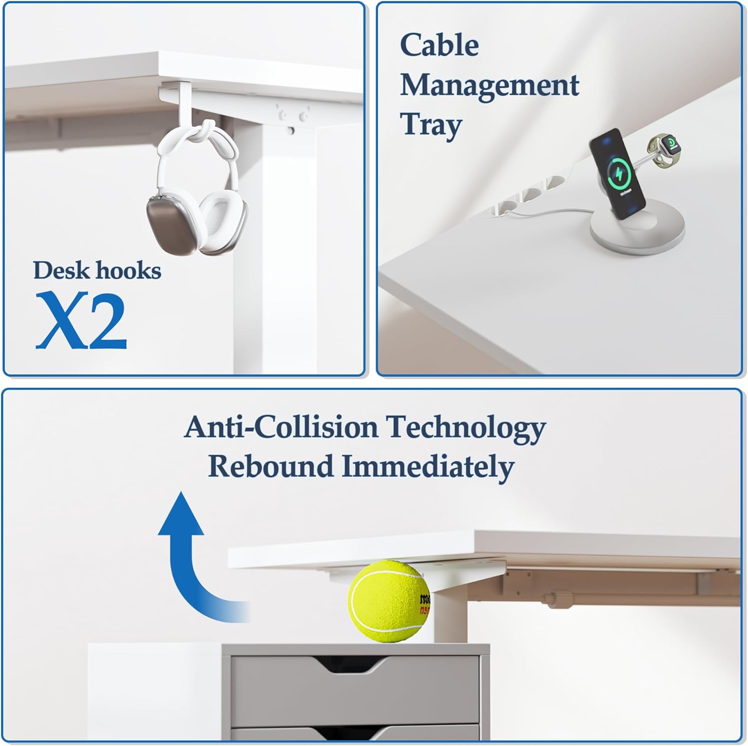 【Anti-Collision Technology & Cable Management】Equipped with safety stop technology, the motor halts when resistance is detected to avoid collisions. Integrated cable management features keep your workspace tidy —perfect for organized and secure setups.