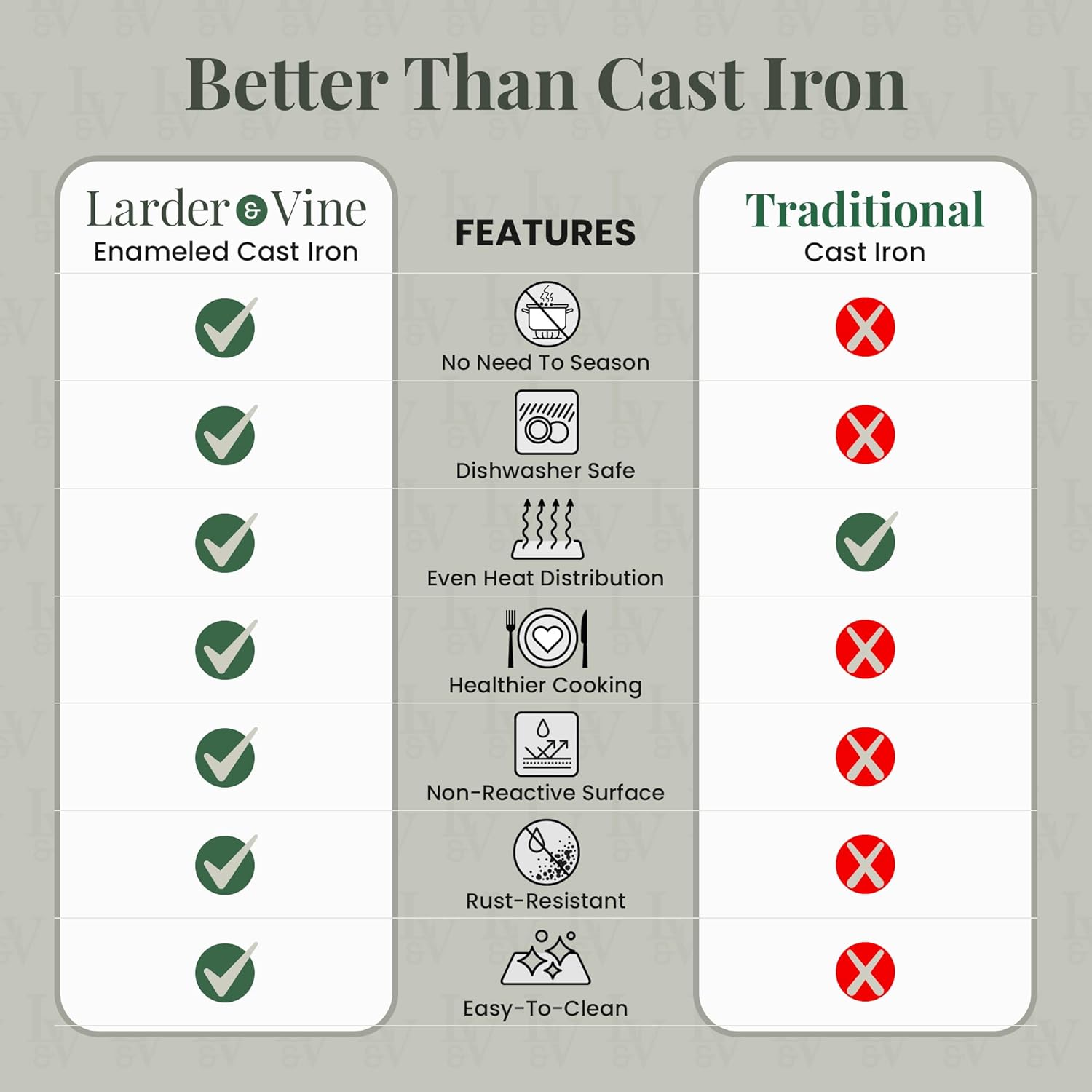 Durable Triple-Layer Enamel: Resists dulling, staining, chipping, and cracking, keeping your cast iron skillet looking impeccable while simplifying your cooking routine.
