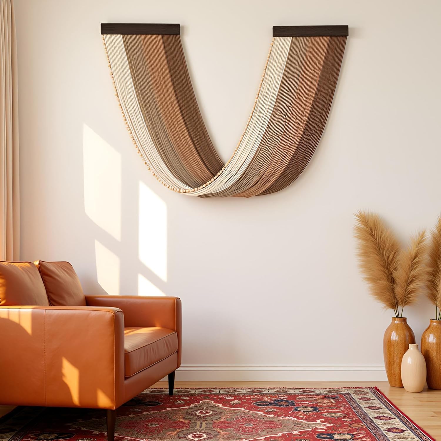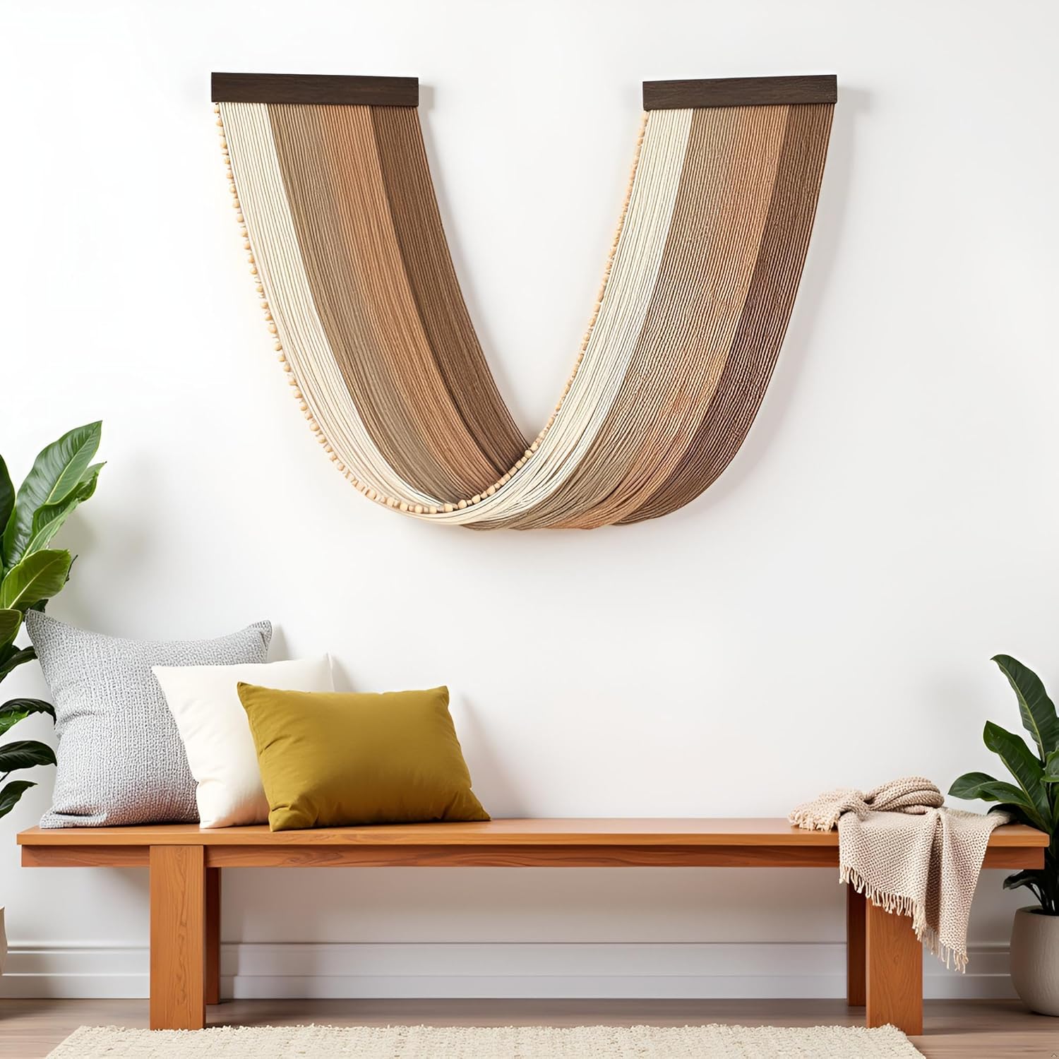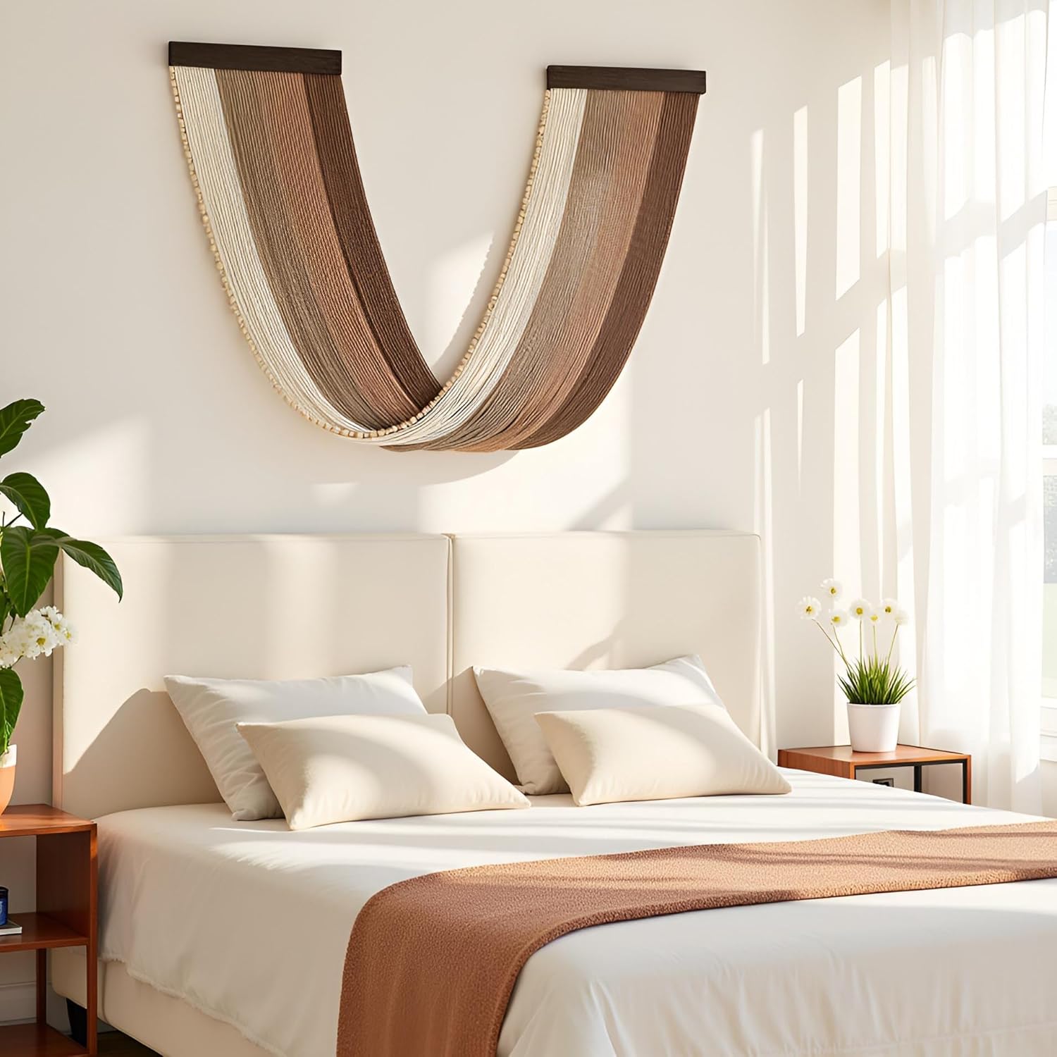 BOHO CHIC WALL DECOR: Transform your blank walls into a stylish focal point with our hand-woven macrame wall hanging. Featuring a beautiful gradient of deep brown to soft white and adorned with natural wooden beads, this tapestry effortlessly blends modern boho charm with organic elegance, perfect for living rooms, bedrooms, and offices.
