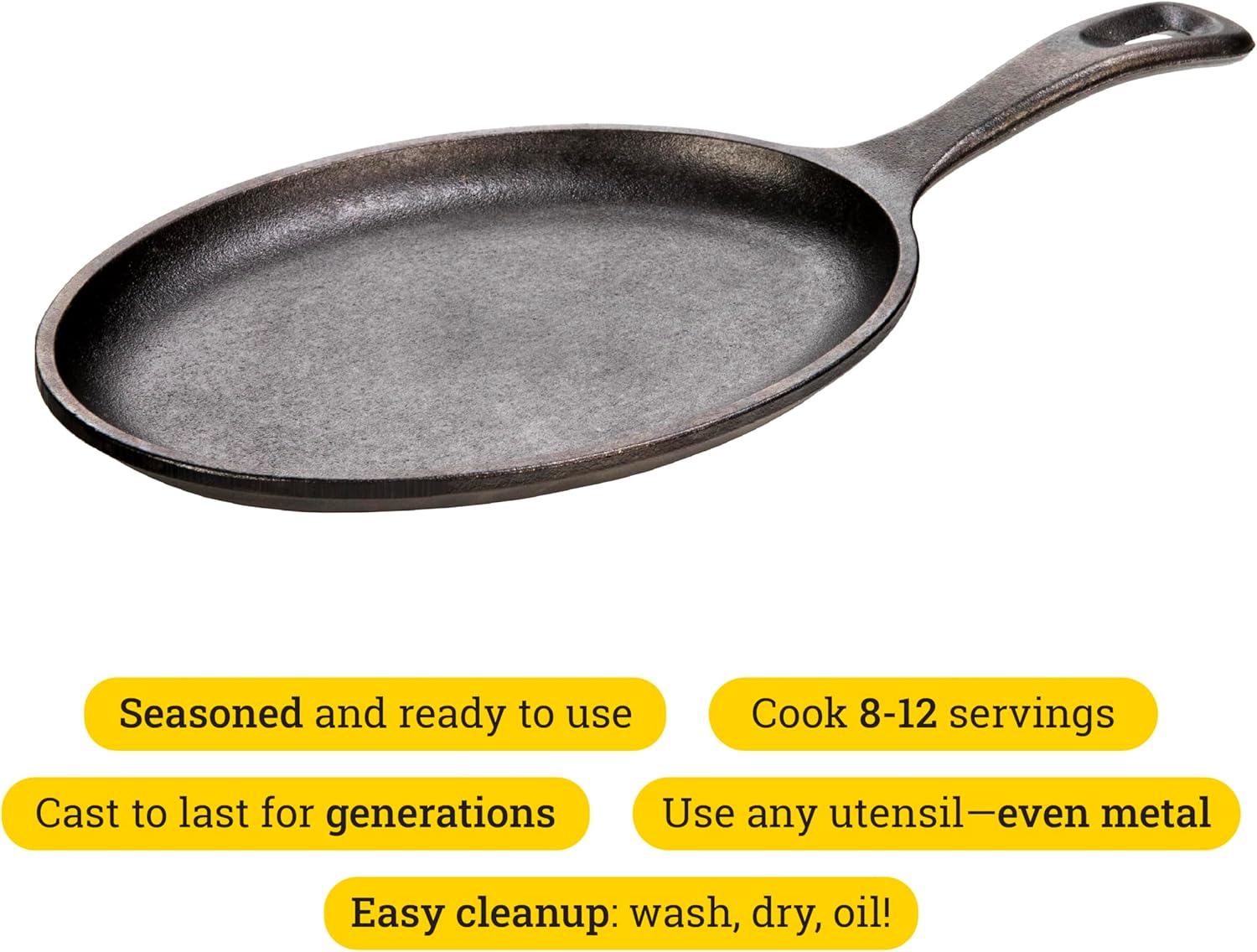 10 inch x 7.5 inch cast iron griddle keeps food hot with unparalleled heat retention and even heating .