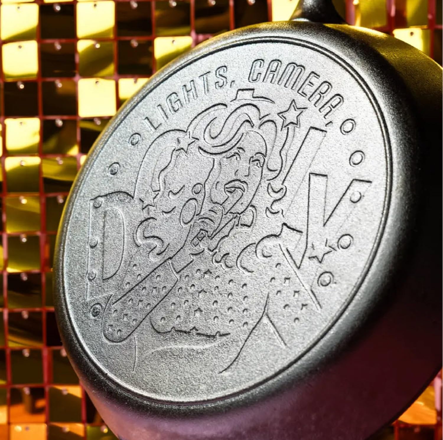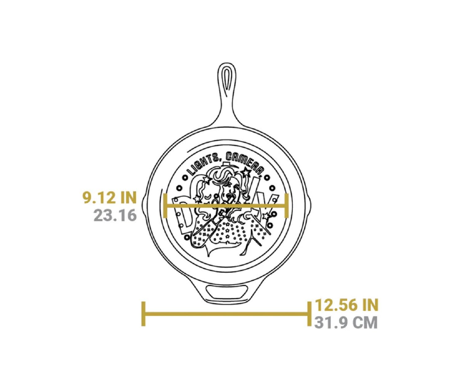 LIGHTS, CAMERA, DOLLY!: Featuring a special “Lights, Camera, Dolly” design, this skillet is a reminder that it’s always showtime somewhere.