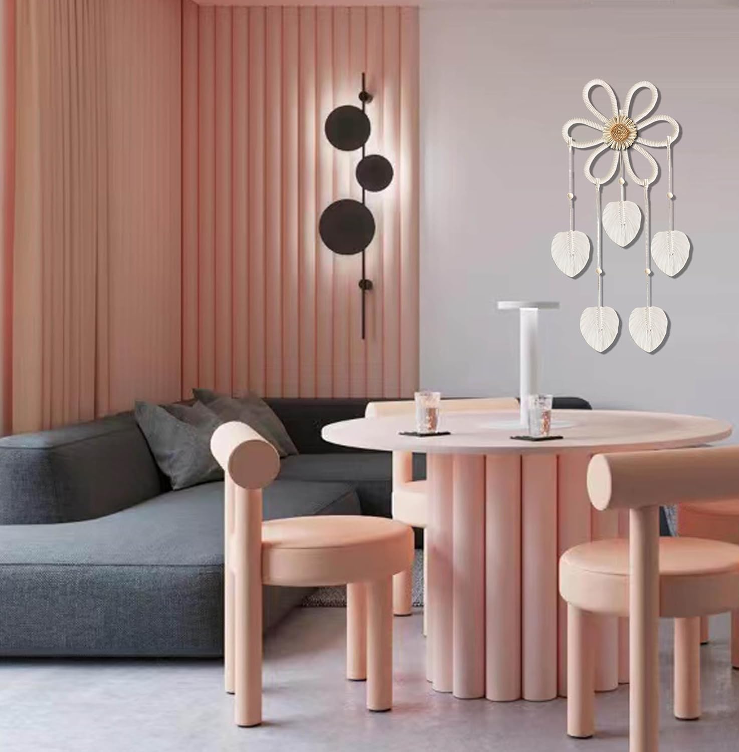 [HANDMADE HIGH QUALITY MATERIALS] – Our tassel wall art is handmade with cotton rope to ensure a clean and soft texture. One handmade flower and 5 tasseled leaves wall hanging as decoration, highly durable, sturdy and stable. This bohemian home decor is perfect for your family!