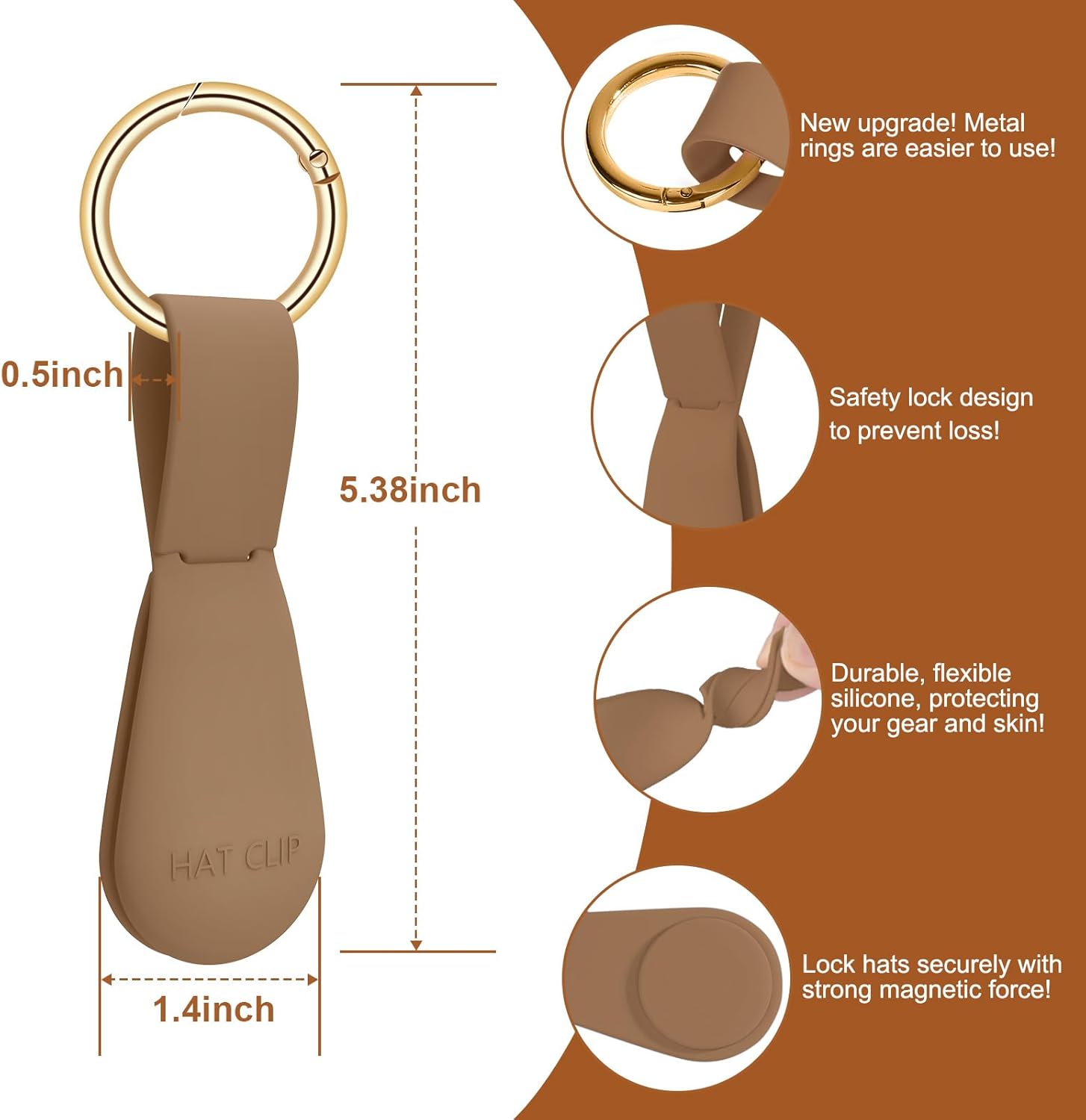 Magnetic Hat Clip for Travel on Bag – Silicone Hat Holder Clip for Sun Hats, Baseball Caps & Fedoras on Purse, Backpack, Luggage & Suitcase, Secure Hat Keeper Accessories (1 Pack, Brown)
