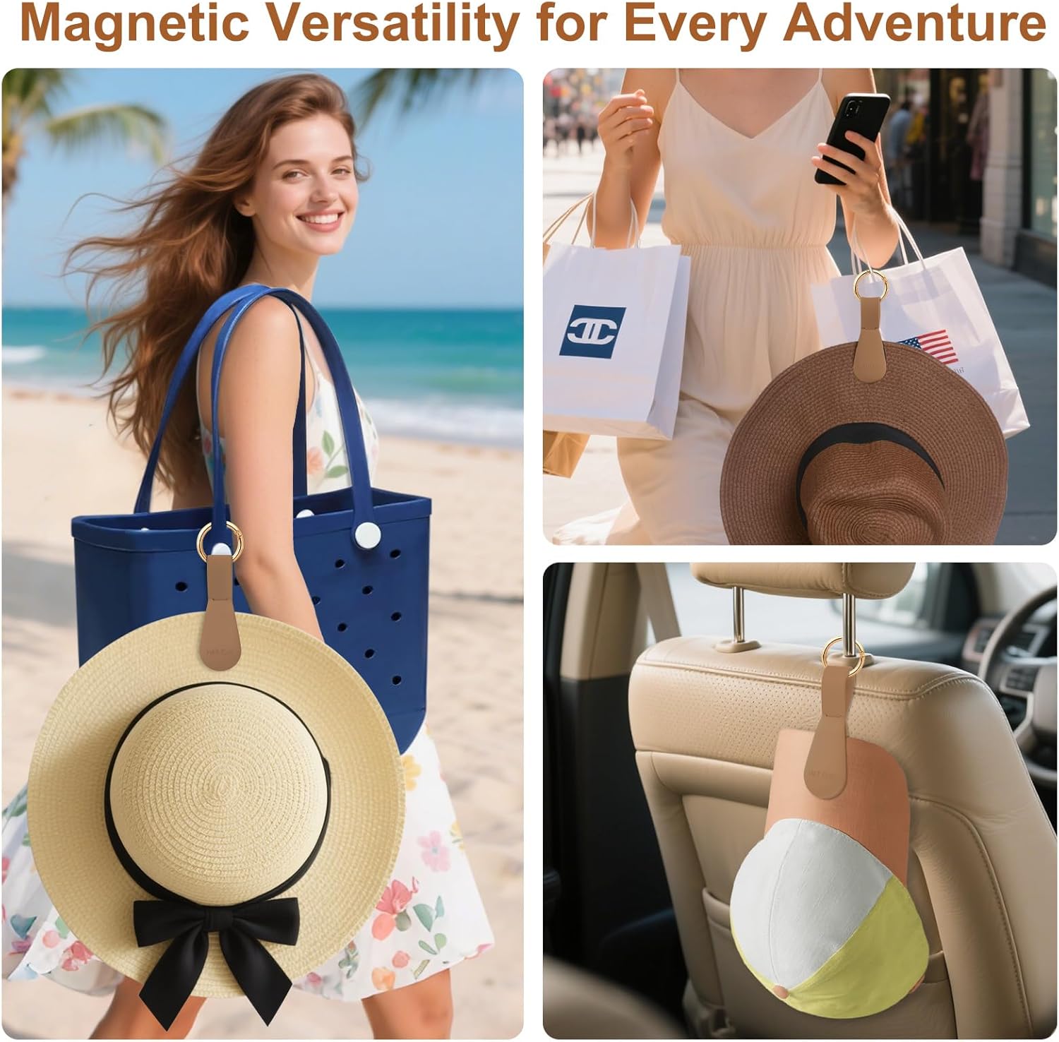 GREAT GIFT IDEA, ESSENTIAL FOR TRAVEL — Fikoksol brown magnetic hat clips are an ideal gift for anyone, women, men,elderly, children. Suit for travelers of all ages, the hat clip is a must-have traveler accessory. The hat clip for travel on bag not only reduces the trouble of carrying hats on the trip, but also reduces the trouble of losing hats or other small items like gloves, scarves, and tickets. Protected by utility patents U.S. Pat. No. 10,413,047.
