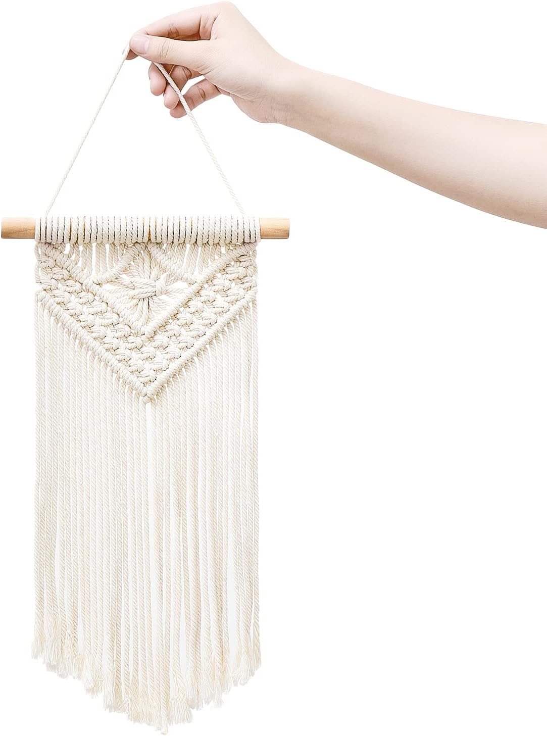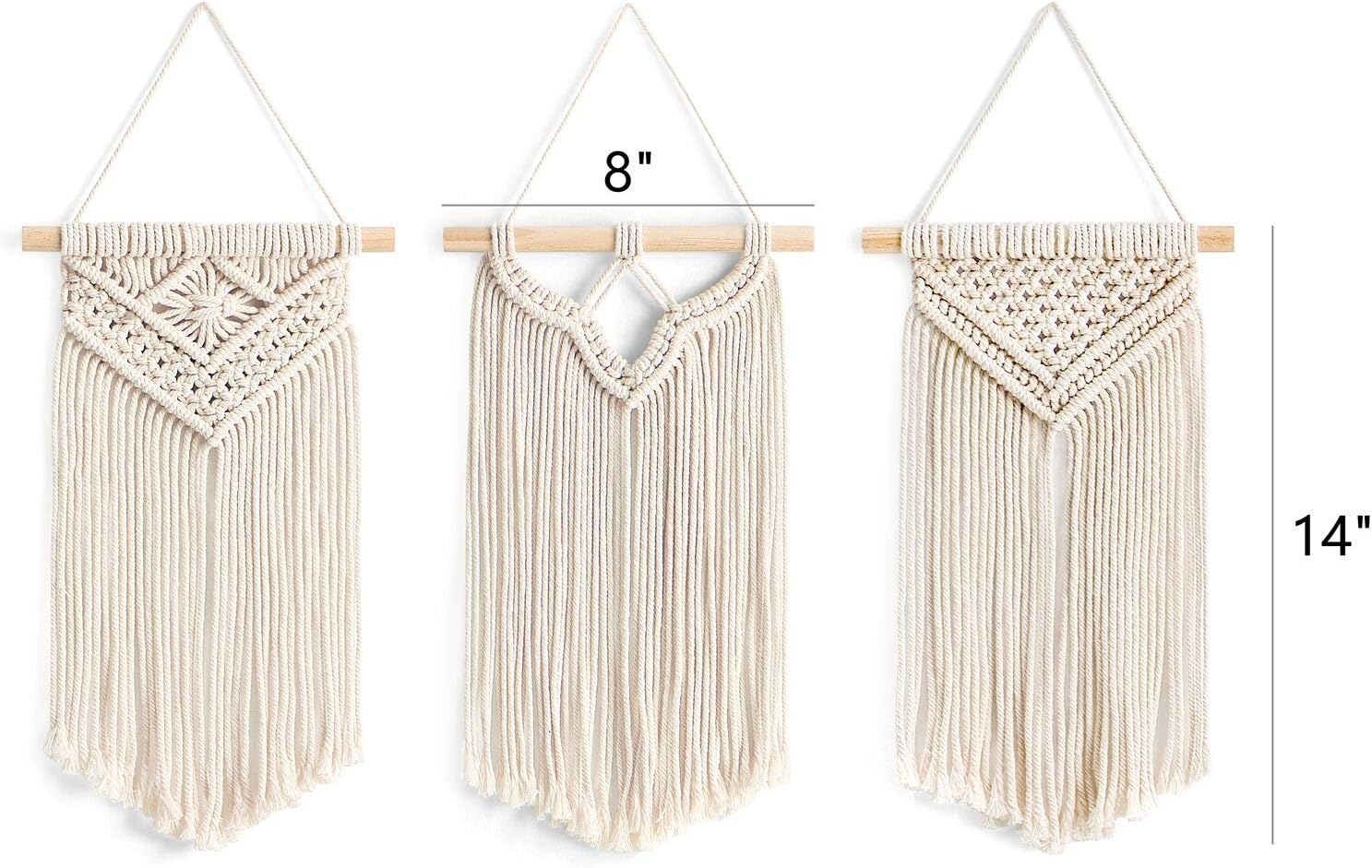 Size: 14″ L x 8″ W (Width: the size of wood dowel, Length: from top to the ends of longest fringe). Quality and Satisfaction of Macrame Wall Hanging are Guaranteed!