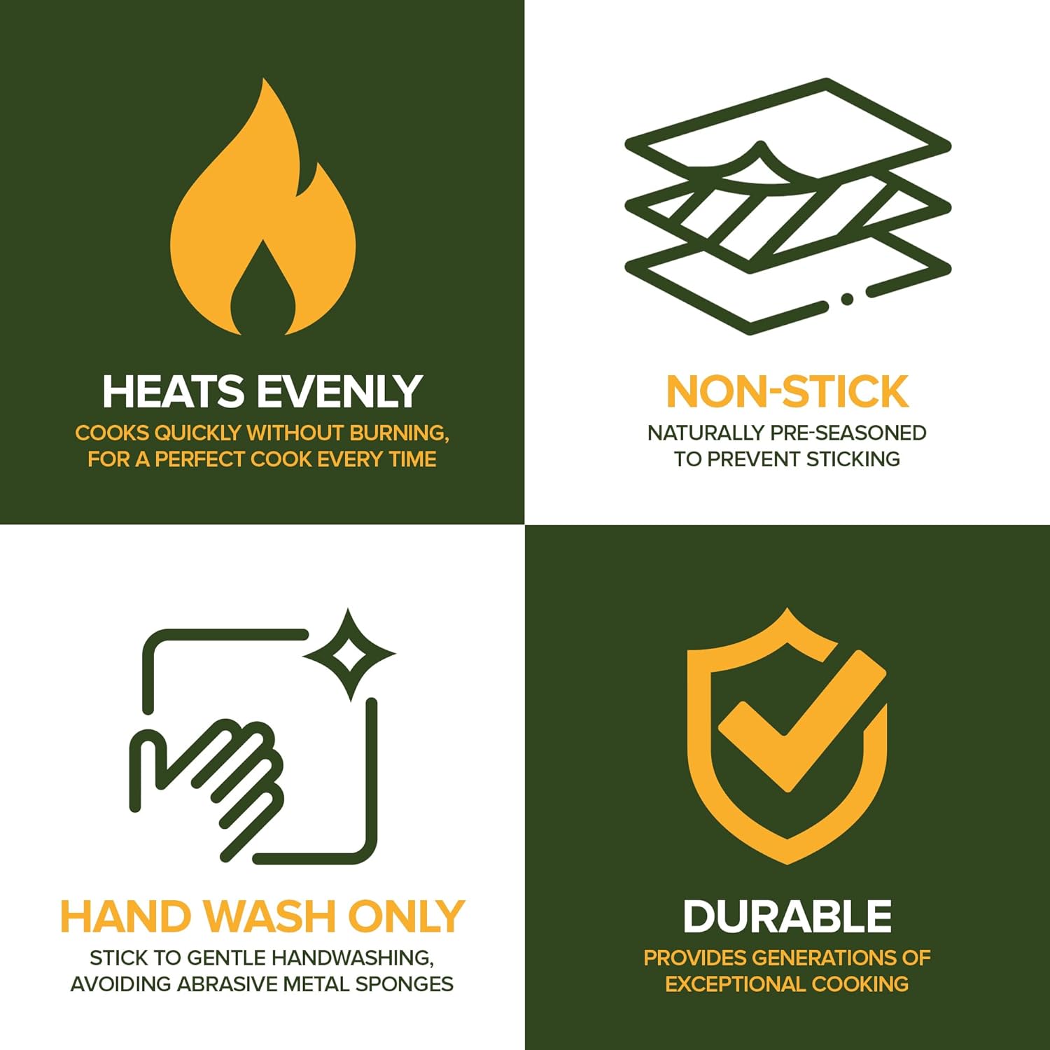 Non-Stick Convenience: Enjoy an easy to clean surface- our naturally pre-seasoned cast iron baking pan is non-stick, with even heat retention & conductivity, providing a healthy way to bake scones, brownies, cornbread, or biscuits