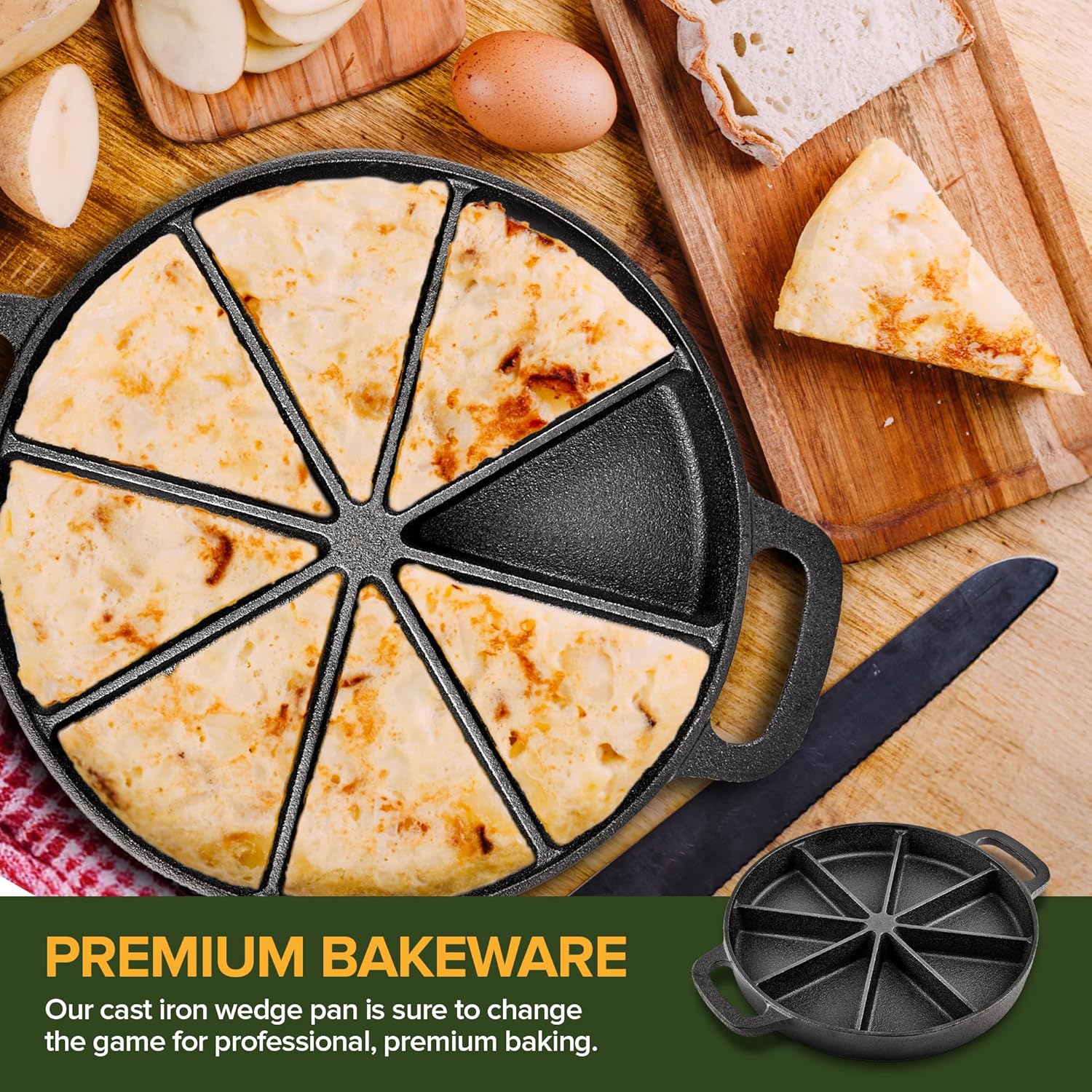 Modern Innovations Classic Cast Iron Wedge Pan, Non-Stick Cornbread Skillet with Easy Transport Handles, 8 Slice Divided Cast Iron Baking Pan for Scones, Biscuits, Breads & Desserts
