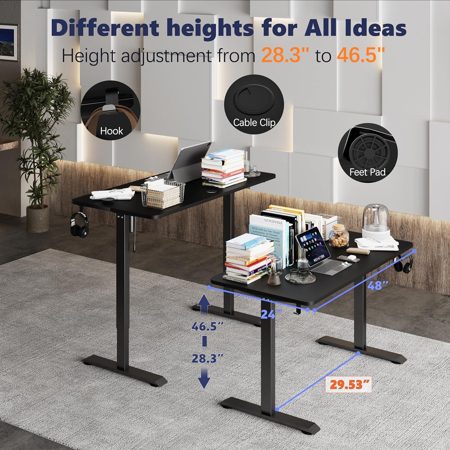 【Spacious an Safe Workspace】–This adjustable desk with 48” x 24” eco-friendly desktop provides you with a spacious workspace. Safe and Low-VOC Materials,insert healthy movement into your day.