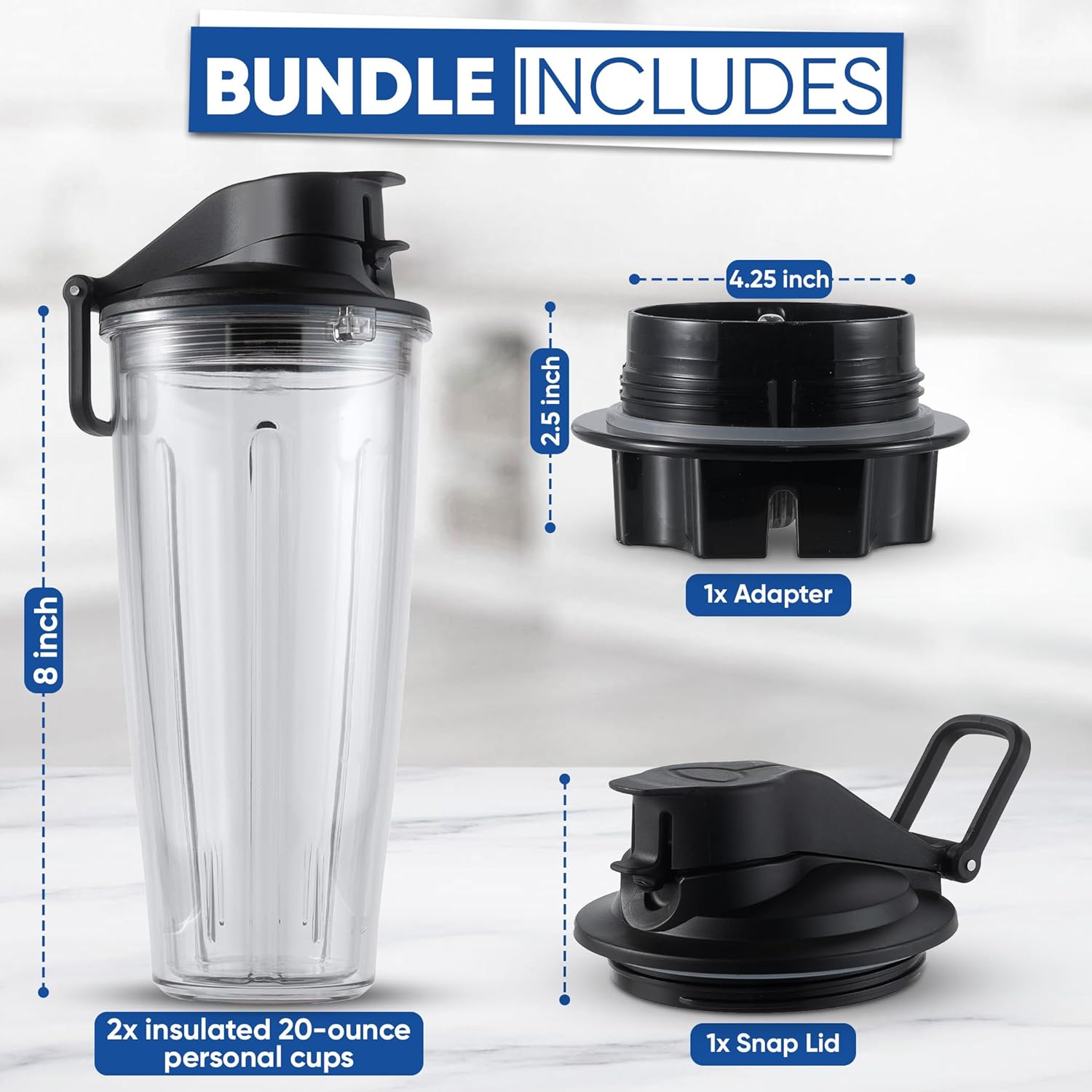 MRX Solutions Personal Cups Adapter fits Vitamix Classic Blenders 5200, 5300, 6300, 6500, 7500, 780 & More + Two BPA-Free 20-oz Insulated Leak-Proof Cups – Not Compatible With Self-Detect Models