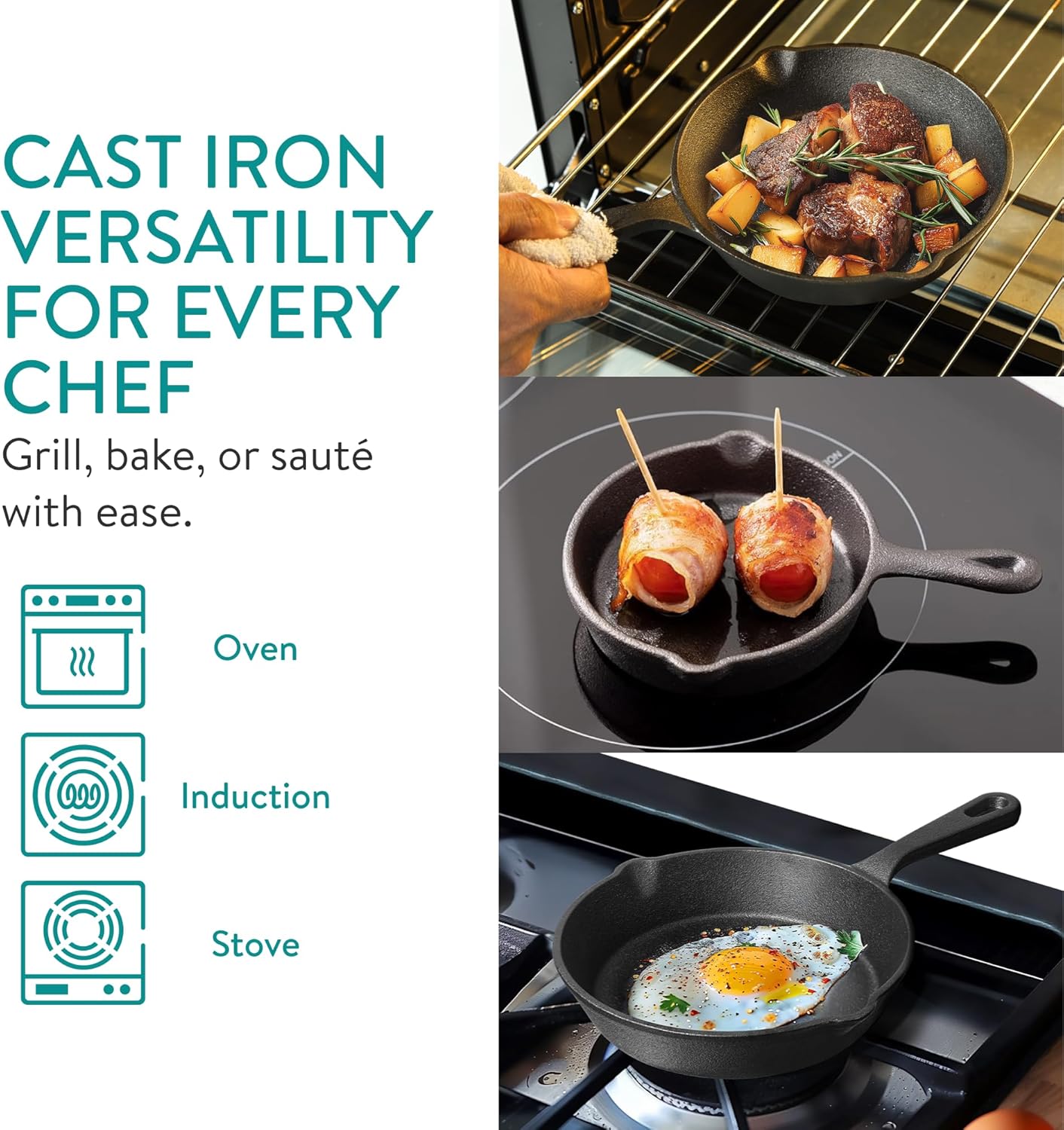 GREAT FOR COOKIE DOUGH: This cast iron skillet is great for cooking cookie dough because it distributes heat evenly and retains it well, resulting in a crispy and delicious finish.
