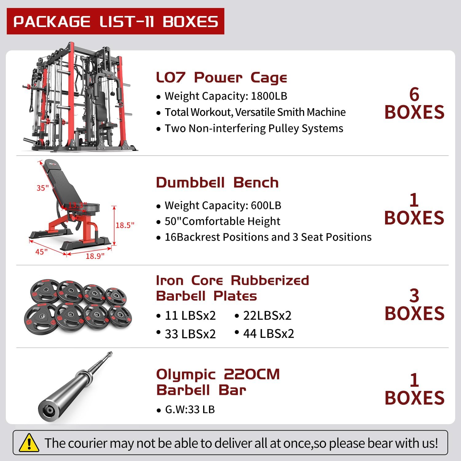 The equipment is delivered in one thick cardboard box and foam to eliminate damage and ensure that the equipment arrives in good condition. The power cages comes with a basic warranty of 24 months on the main steel frame and 12 months on the accessories. If you have any questions, please feel free to contact us, we will provide you with satisfactory service.