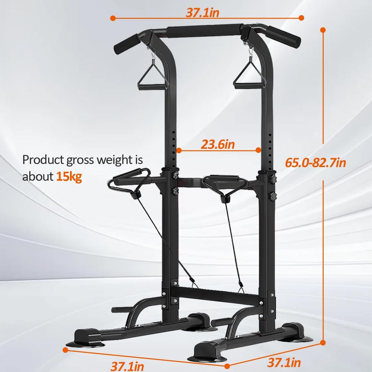 [RUGGED AND DURABLE]: The sturdy power tower is made of thick heavy-duty steel structure with high-density foam rubber handles, handrails and non-slip screws. The square tube is thicker and wider, and can hold up to 330 pounds.