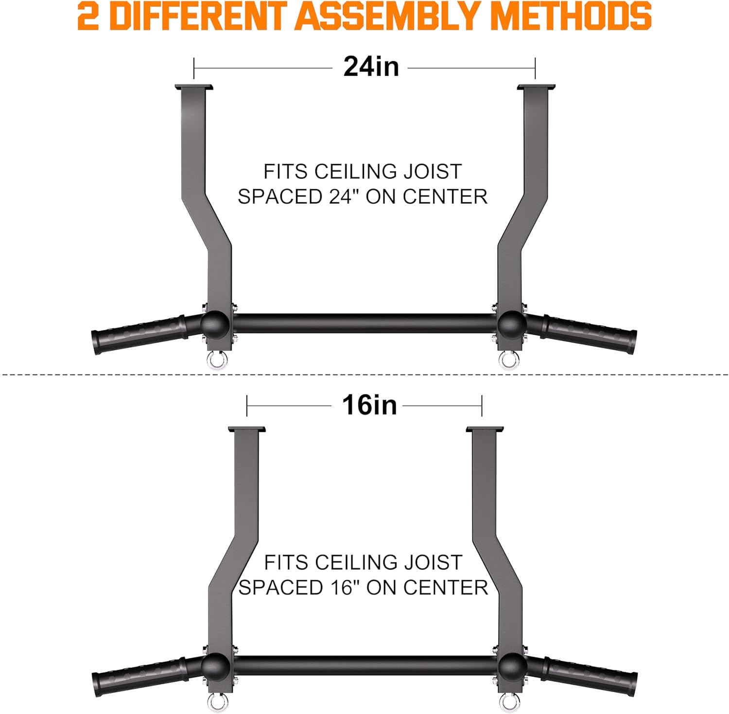 Pull Up Bar Ceiling Mount, 600LBS Heavy Duty Multi Grip Chin Up Bar, 24″/16″ Rafter PullUp Bar, Ceiling Beam for Gym/Garage/Basement with Ball Finger & Round Anchors, Easy to Install