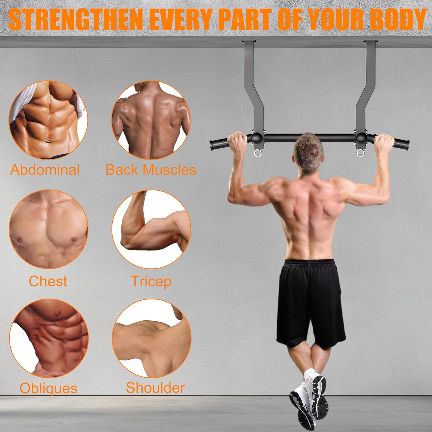 【MULTI FUNCTION ANCHOR】Our rafter pull up bar features two anchors for installing additional training accessories: TRX straps, resistance bands, sandbags, yoga straps, and power ropes, catering to diverse fitness needs.