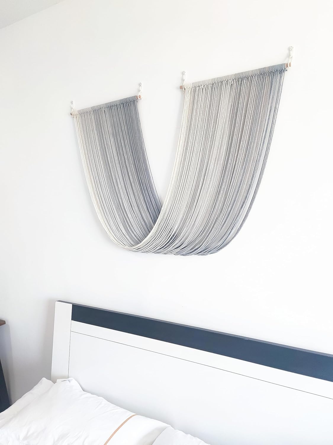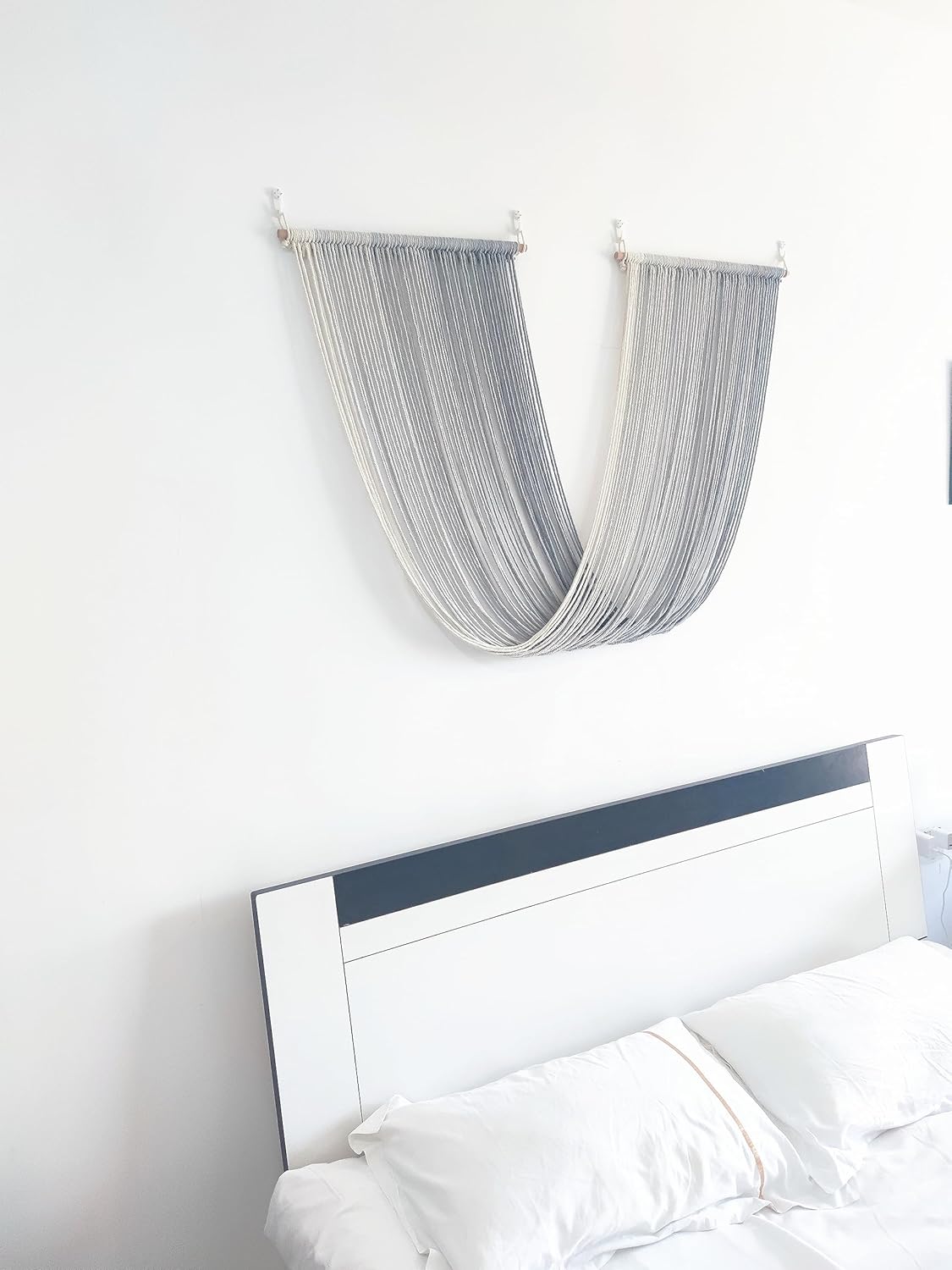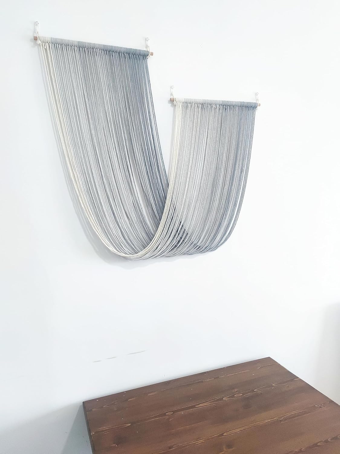 Qulbuj Macrame Wall Hanging Tie-Dye Yarn Tapestry Boho Home Decor 52″ Wx34 L, Grey
