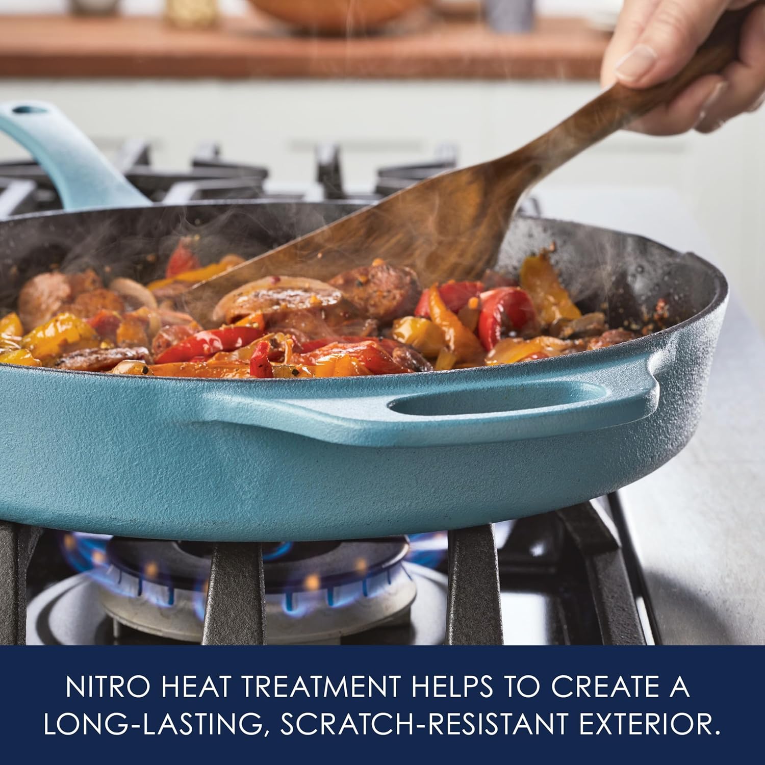 NEXT-GEN CAST IRON: Not your ordinary cast iron, this first-of-its-kind NITRO Cast Iron combines the performance of a pre-seasoned cast iron fry pan with easier cleaning and maintenance, added durability, and a gorgeous enamel-like finish that’s resistant to rusting, chipping, and staining.