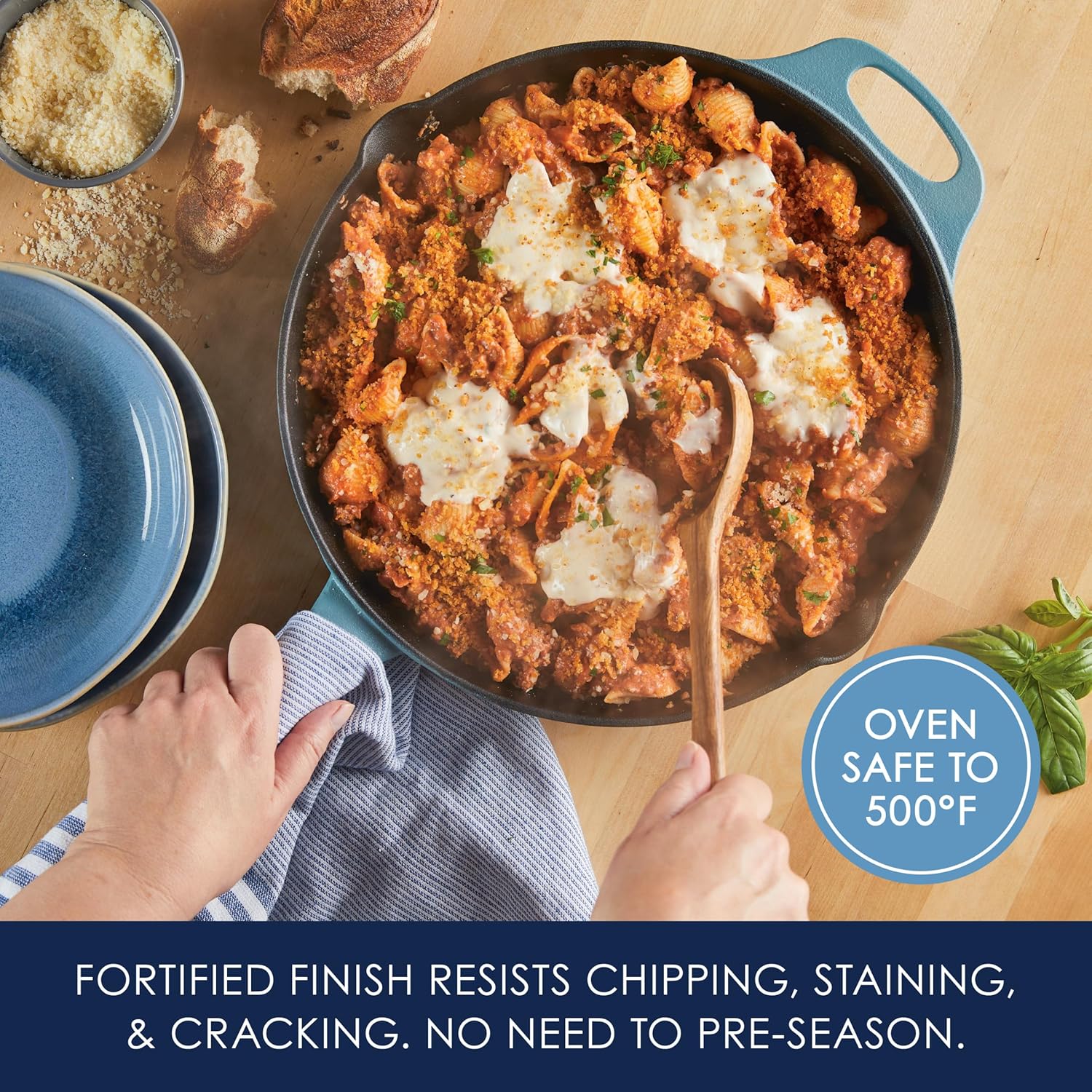 TURN UP THE HEAT: Stove, oven, and broiler safe to 500 degrees F, our NITRO Cast Iron provides exceptional searing and bake-ready performance with exceptional heat retention, so it can handle any recipe from stovetop to oven.