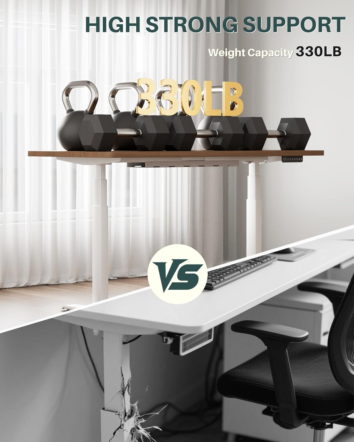 [Heavy-Duty 330LB Capacity] Built with industrial-grade 50 steel, this adjustable height standing desk supports up to 330lbs – sturdy enough for dual monitors, PCs, and office equipment. The reinforced crossbars and wide base ensure wobble-free stability at any height setting
