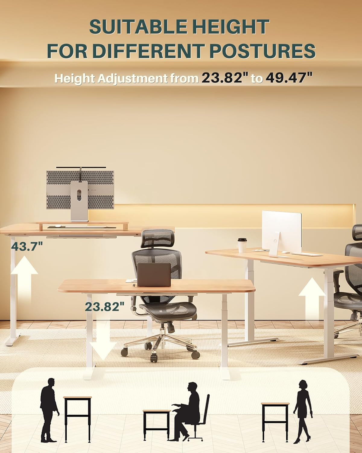 [Whisper-Quiet Dual Motor System] Experience ultra-smooth height adjustments (24″-50″) with our advanced dual motor system operating under 50dB. The electric standing desk transitions silently between sitting/standing positions at 1″/second – perfect for focus-intensive work environments.
