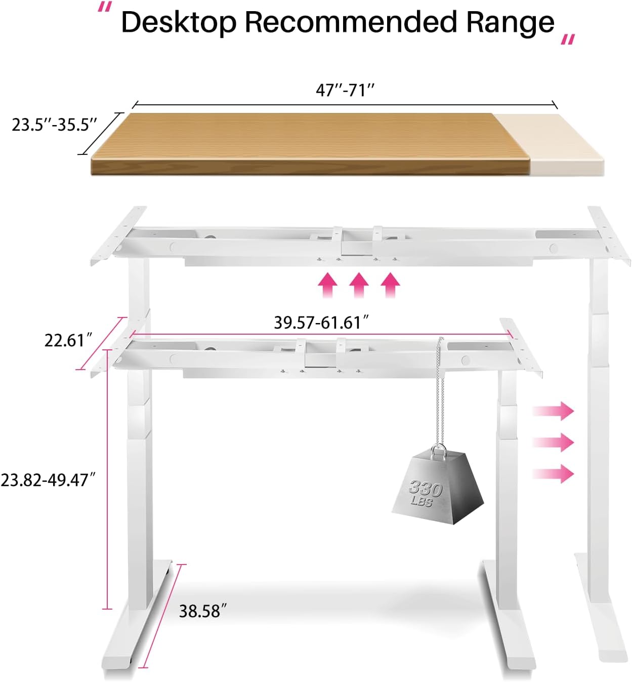 Redlife Dual Motor Standing Desk Frame, Electric Adjustable Standing for Table Top, 330 lbs Weight Capacity, Tabletop Lift Range 24”-50”, Stand up Frame, Ergonomic Standing Desk Legs for Home Office