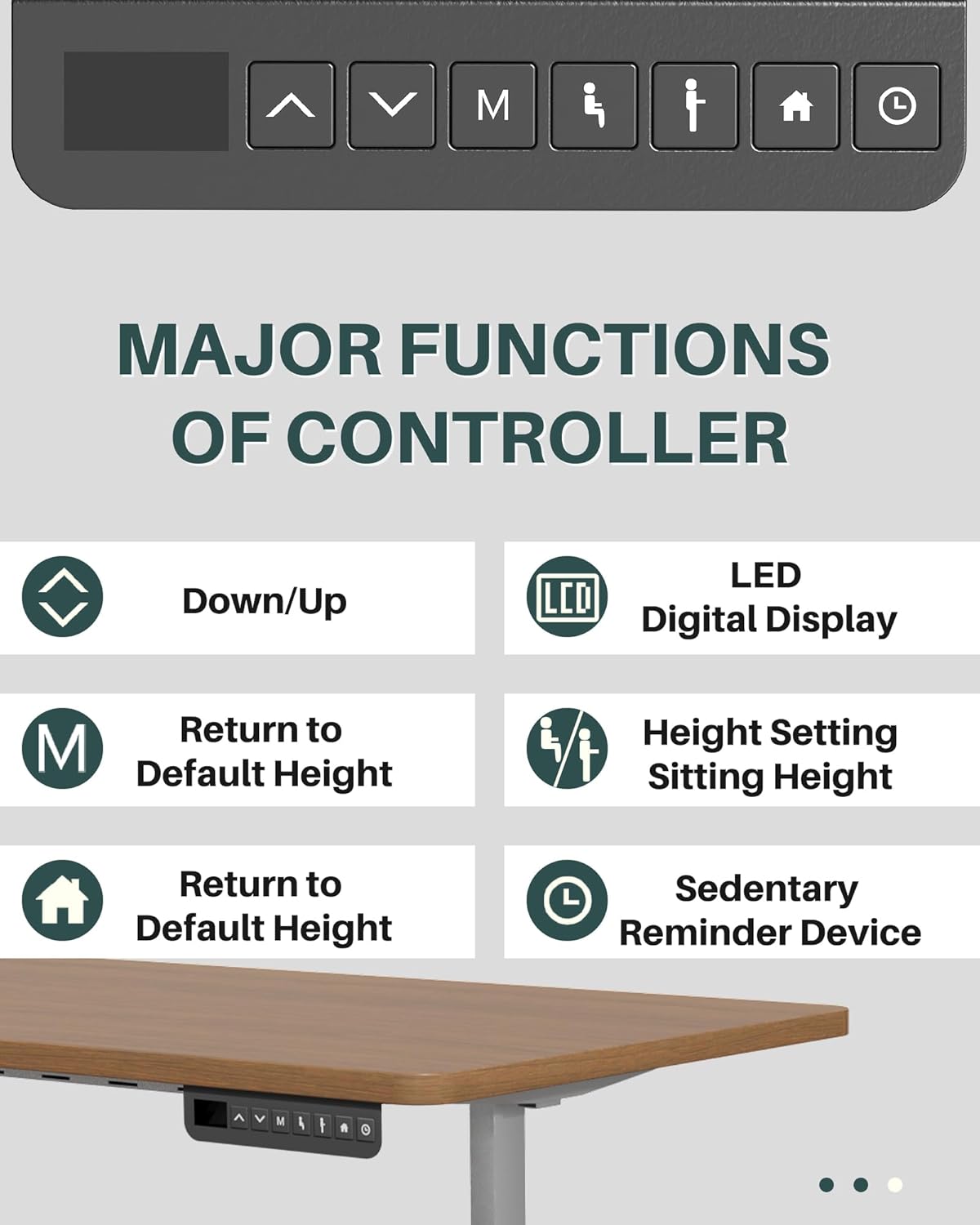 [Smart Memory Controller] The 7-button control panel features 3 programmable height presets and reminder alerts. Install the 51.2″ corded controller on either side. USB charging port keeps devices powered during height adjustments from sitting to standing positions.