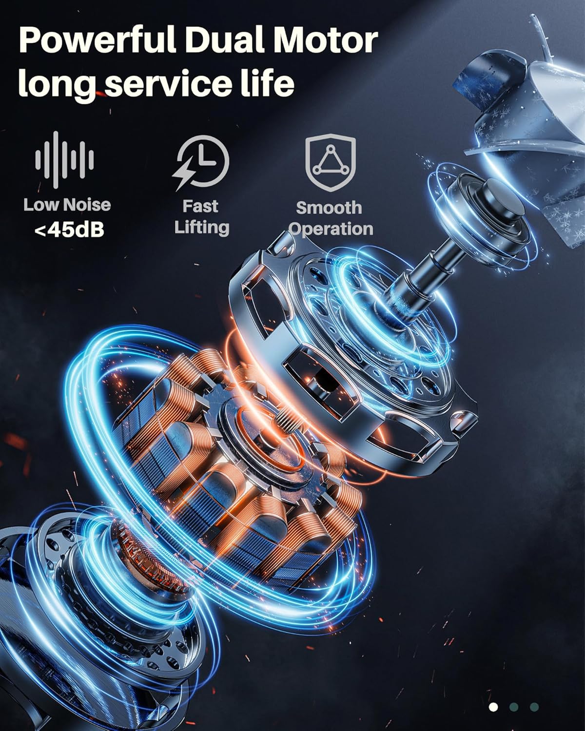 [Whisper-Quiet Dual Motor System] Experience ultra-smooth height adjustments (24″-50″) with our advanced dual motor system operating under 50dB. The electric standing desk transitions silently between sitting/standing positions at 1″/second – perfect for focus-intensive work environments.