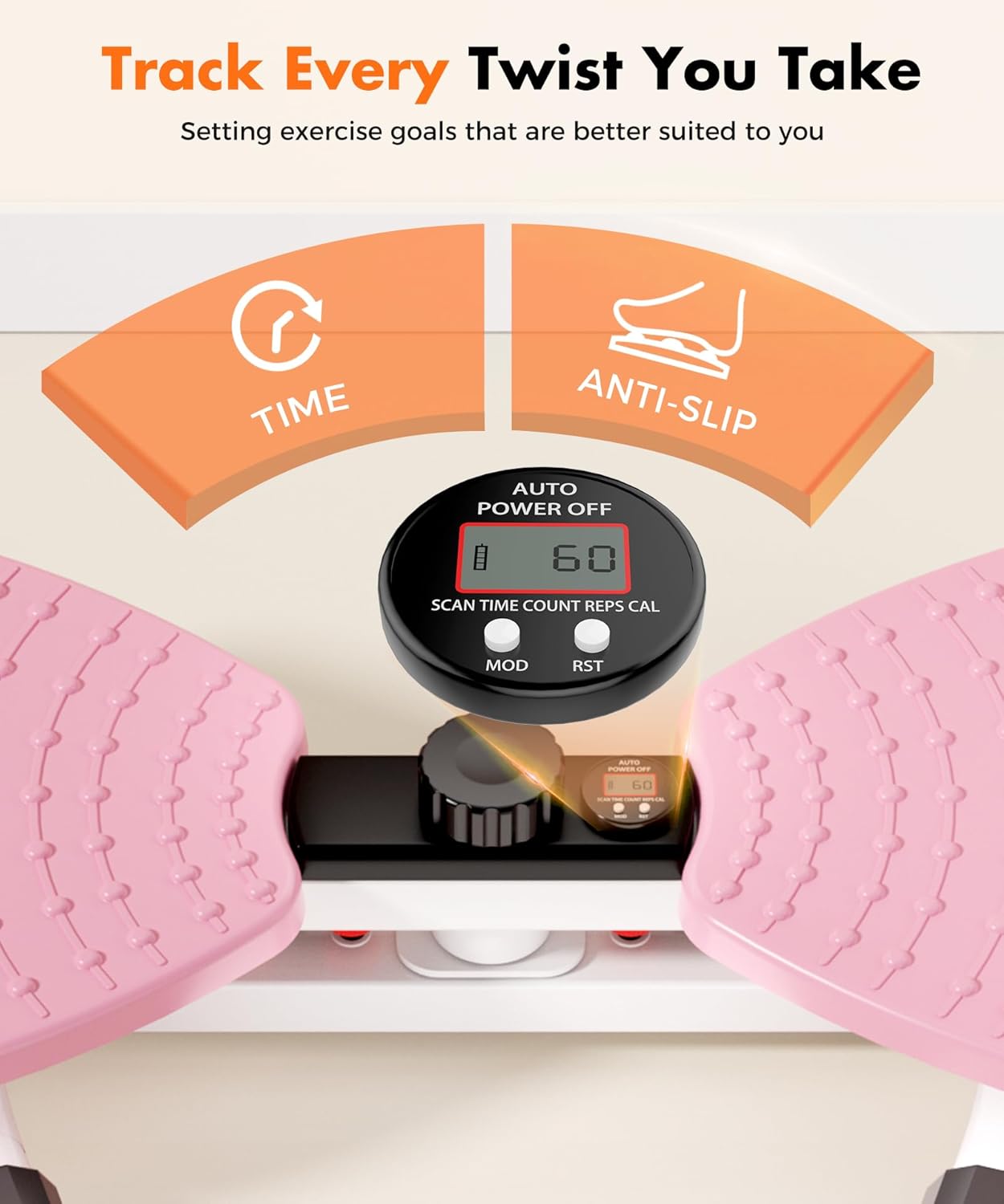 【Smart Digital Counter】Exclusive smart system auto-tracks reps and records workout time in real time, letting you master your training progress precisely. Say goodbye to manual counting—this waist twister machine keeps you on top of every workout