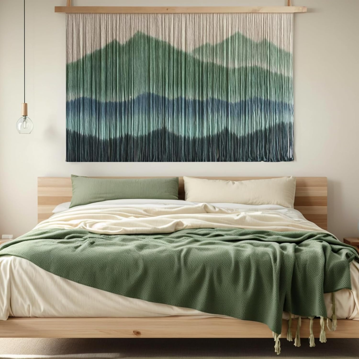 Easy to install and maintain: The macrame wall decor comes with convenient mounting hooks and hanging rope(Includes accessories required for three installation methods). Due to the shipping packaging, your macrame wall hanging hand-dye tapestry may curl and wrinkle. After hanging the wall mount, please check whether there are any tangles and untie them. Immediately use a steamer or iron to straighten the fiber or use a comb to straighten it. After hanging for a week or two, the fibers will straighten by themselves.