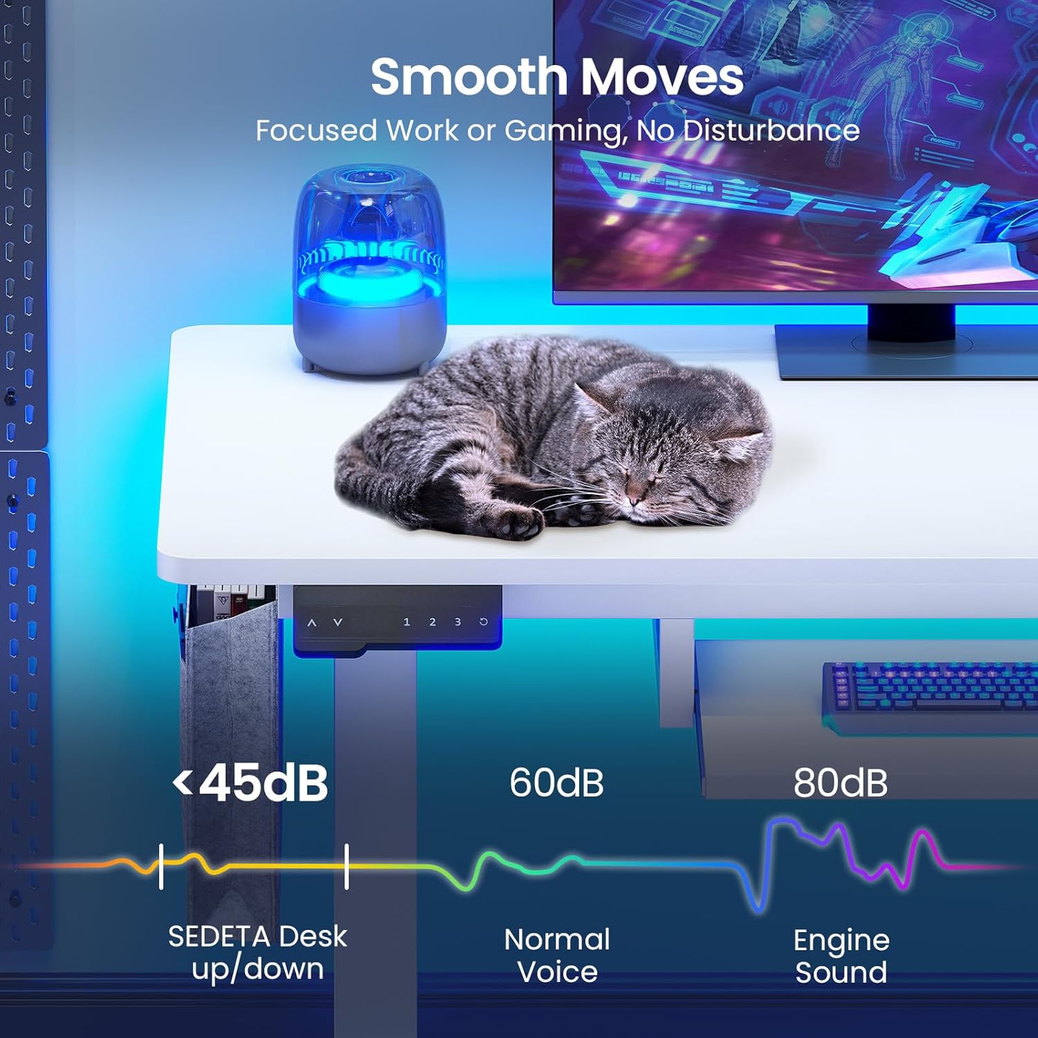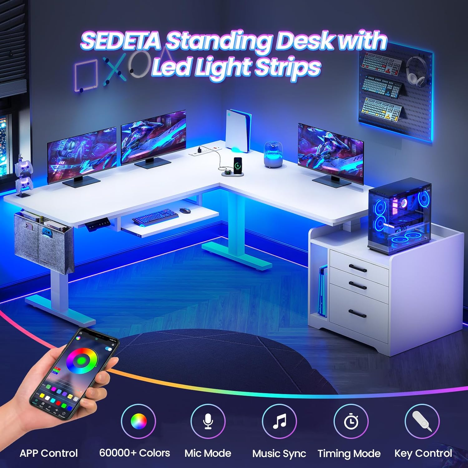 【Cool & Smart Led Light Strips 】The Sedeta home office desk comes with RGB LED light strip, remote control via APP, Over 60000 colors and 29 flashing modes for your to choose. Led light strip with music sync function, built-in sensitivity adjustable mic, led light color will change with the rhythm of the sound and music. And with timer function, just enjoy it in a smart way, create gaming and working atmosphere.