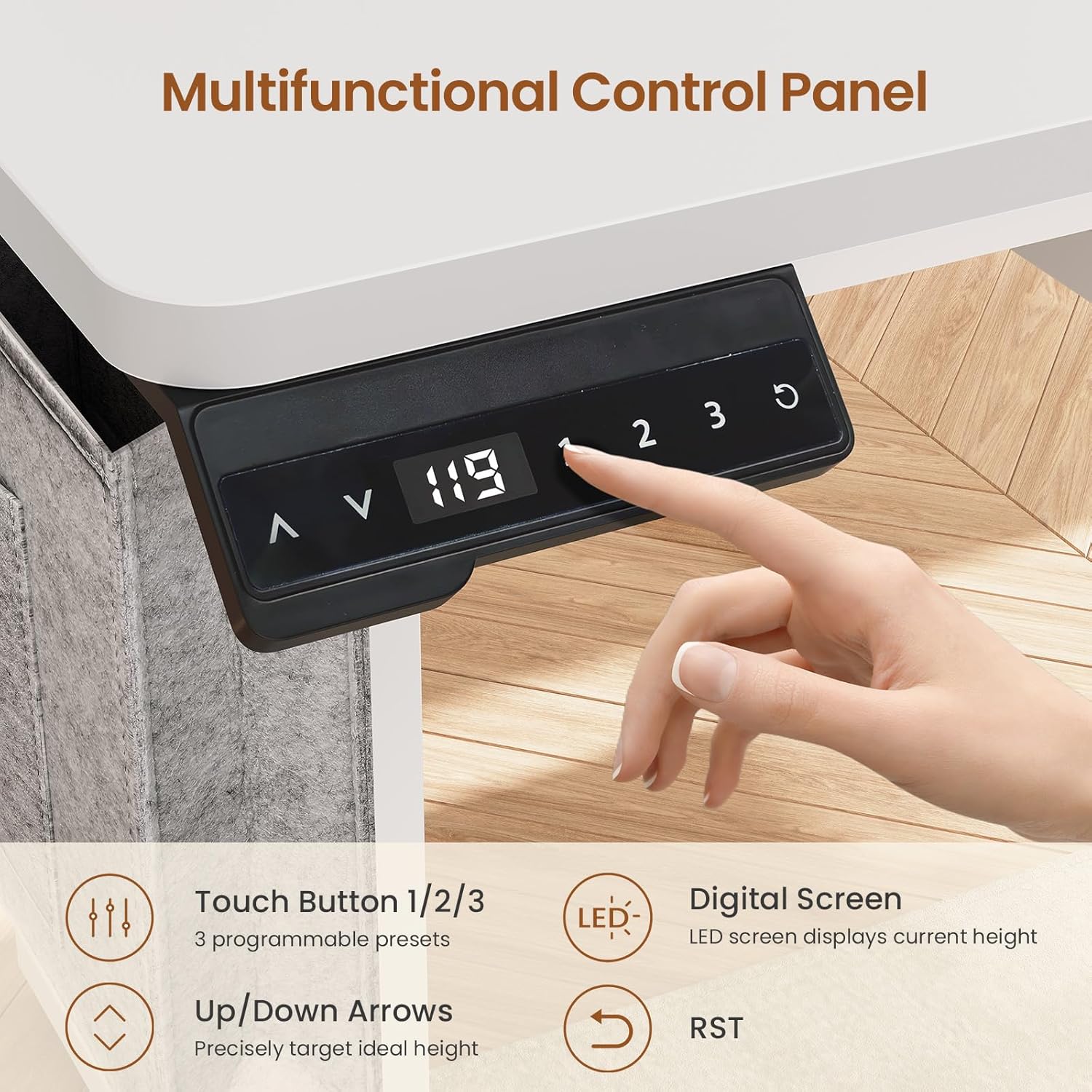 【Built to Last with Exceptional Stability】The industrial-grade steel frame and T-shaped design of the stand up desk support up to 400 lbs. Desktop made of P2 particle board, sturdy durable and anti-scratched. And powered by a robust yet quiet motor (operating at less than 45 DB). If your item arrives damaged, scratched or missing part, please feel free to contact us, we will send you free replacement or offer a partial refund.