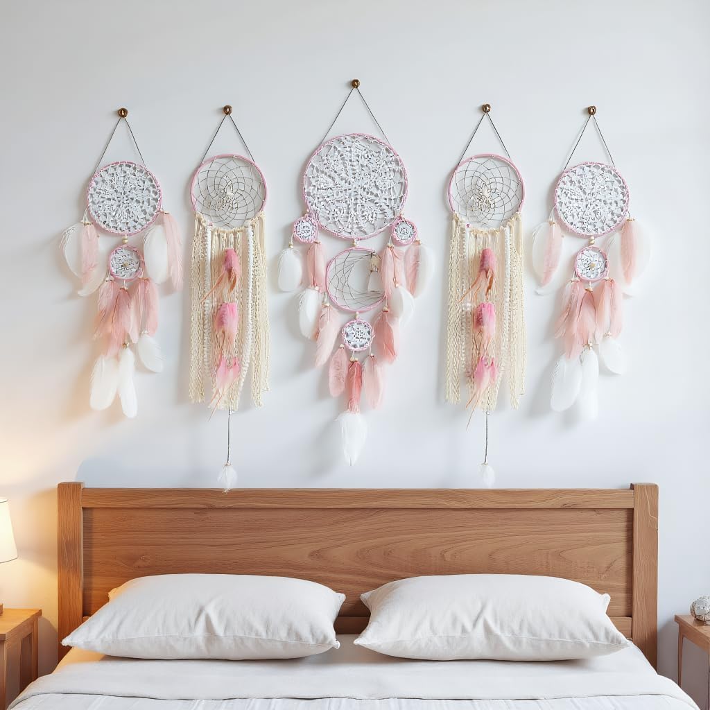 VERSATILE DECOR: Set of 5 large dream catchers perfect for boho wall decorations, bedroom accents, wedding venues, and home embellishments