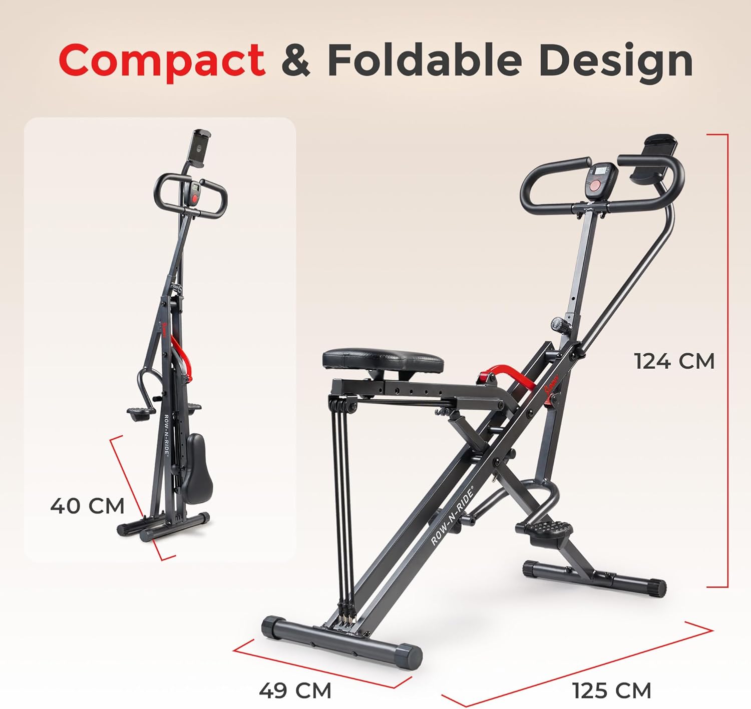 【MULTI-PURPOSE EXERCISE MACHINE】Designed with versatility in mind, this compact Row-N-Ride allows for multiple exercises, including squats, deadlifts, incline chest presses, and bent-over rows, giving you a complete full-body workout in one machine.