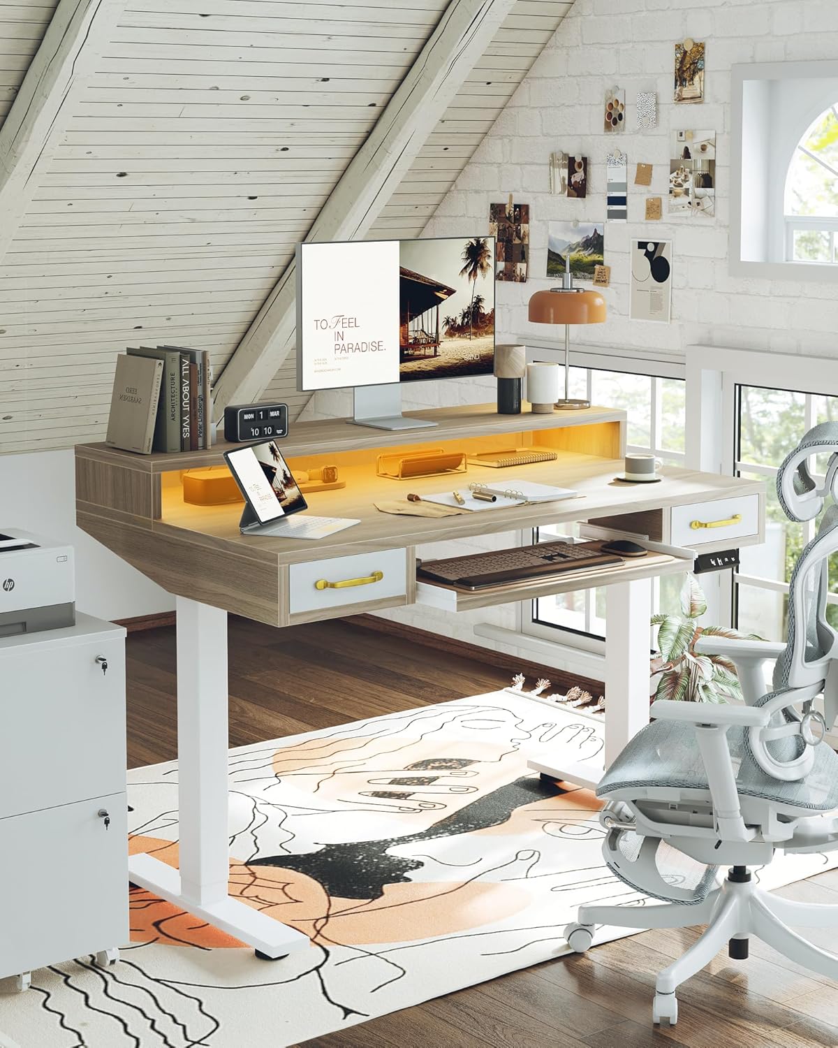 Keyboard Tray & Drawer Storage: Equipped with a sliding keyboard tray and two drawers to enhance workspace organization and improve daily work efficiency.
