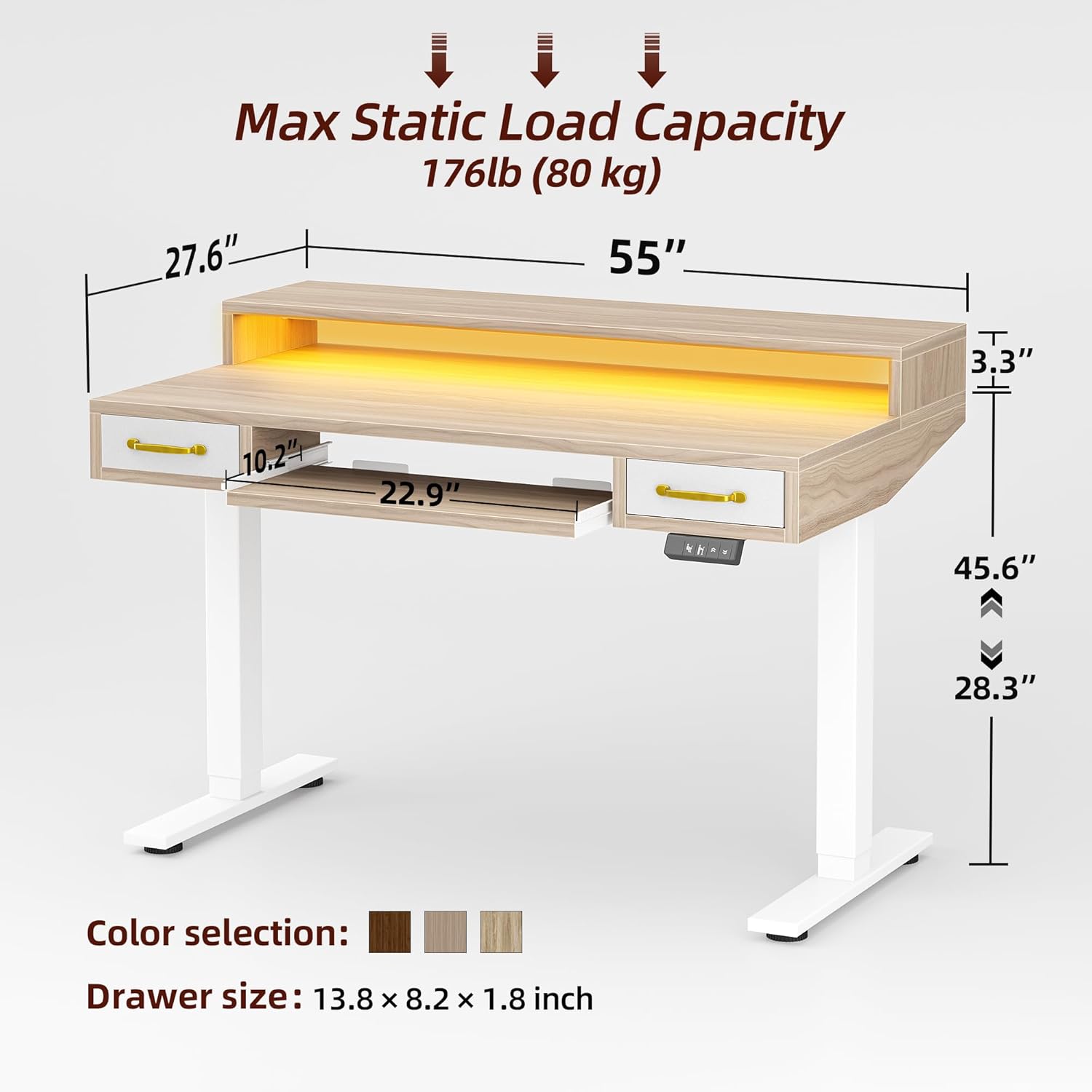 Height Adjustable Desk: Adjustable from 28.3’’–45.6’’, our desk lets you switch between sitting and standing, promoting both productivity and ergonomic wellness.