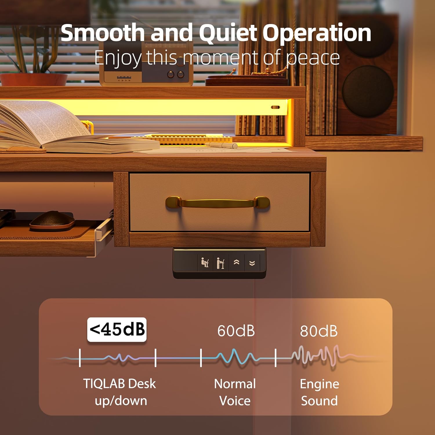 Keyboard Tray & Drawer Storage: Equipped with a sliding keyboard tray and two drawers to enhance workspace organization and improve daily work efficiency.
