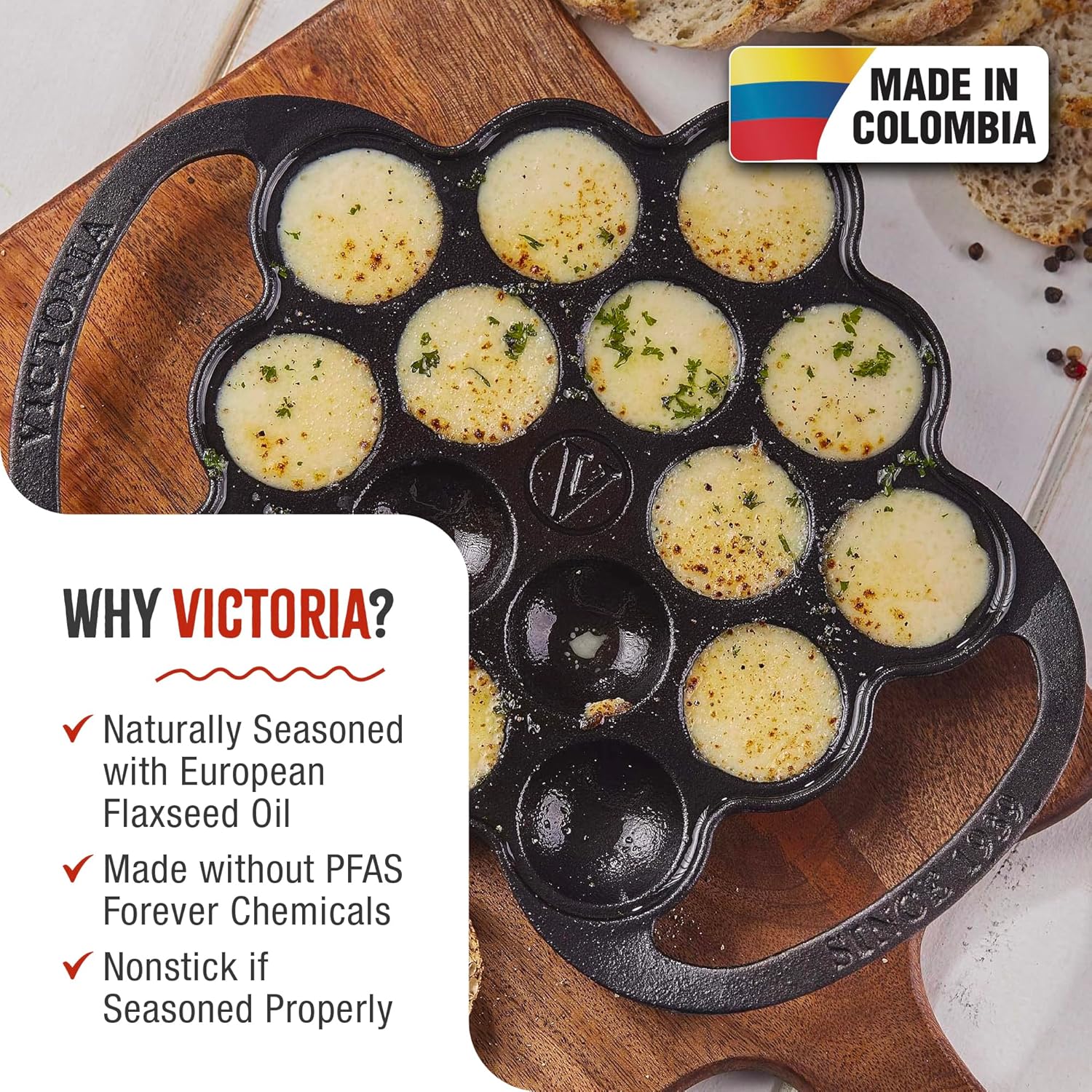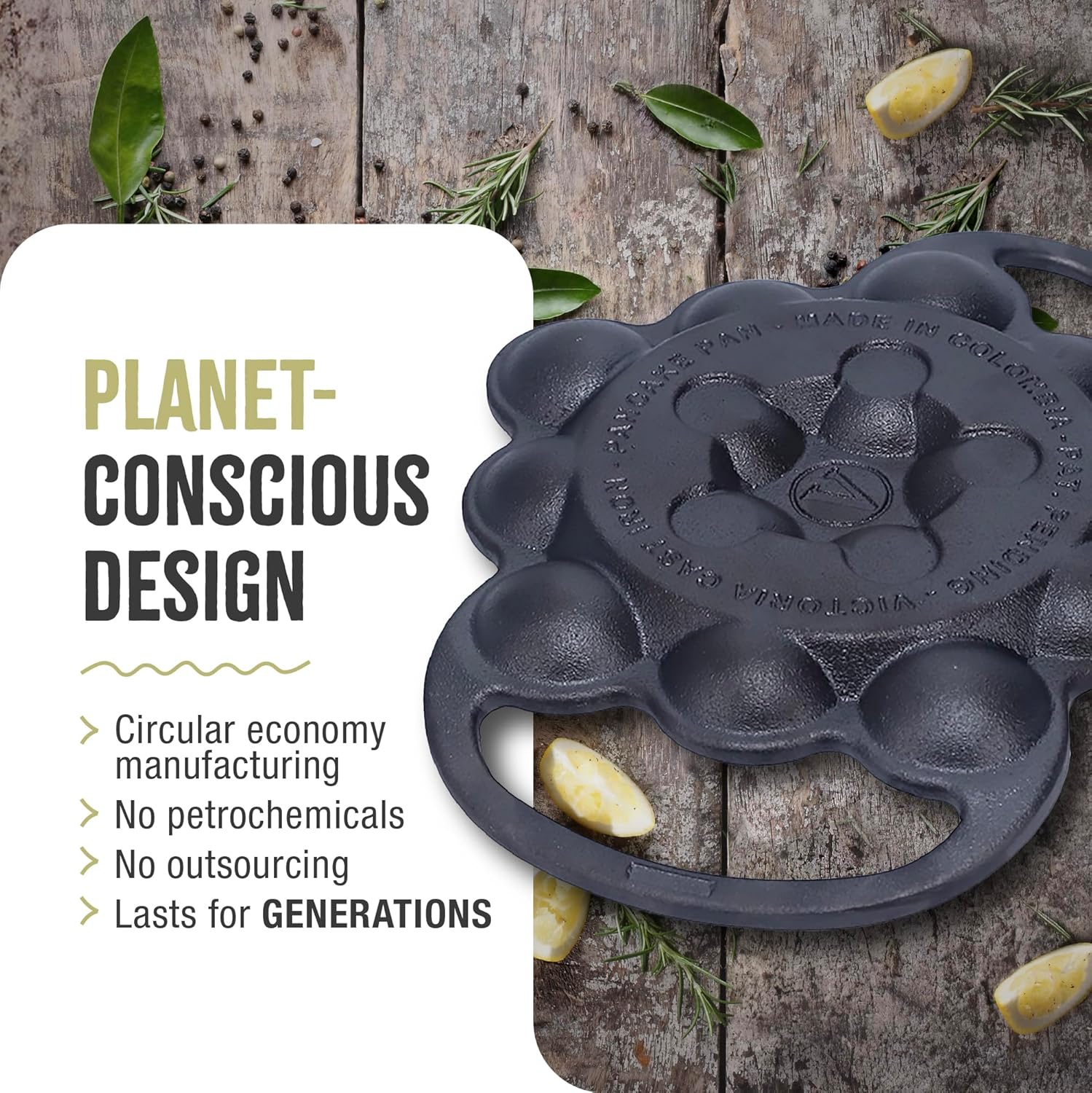 Victoria Cast Iron Poffertjes Dutch Pancake Pan with Loop Handles, Preseasoned with Flaxseed Oil, Made in Colombia