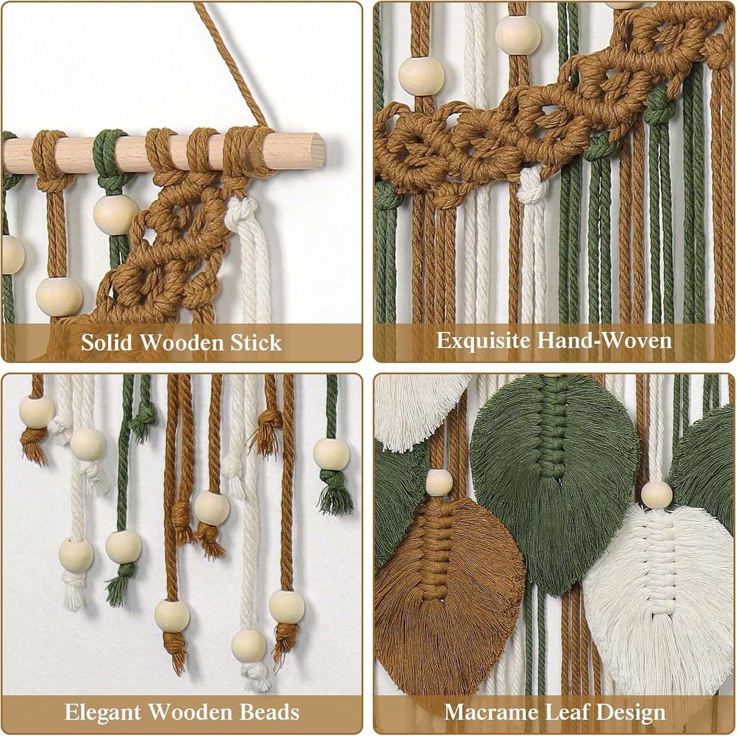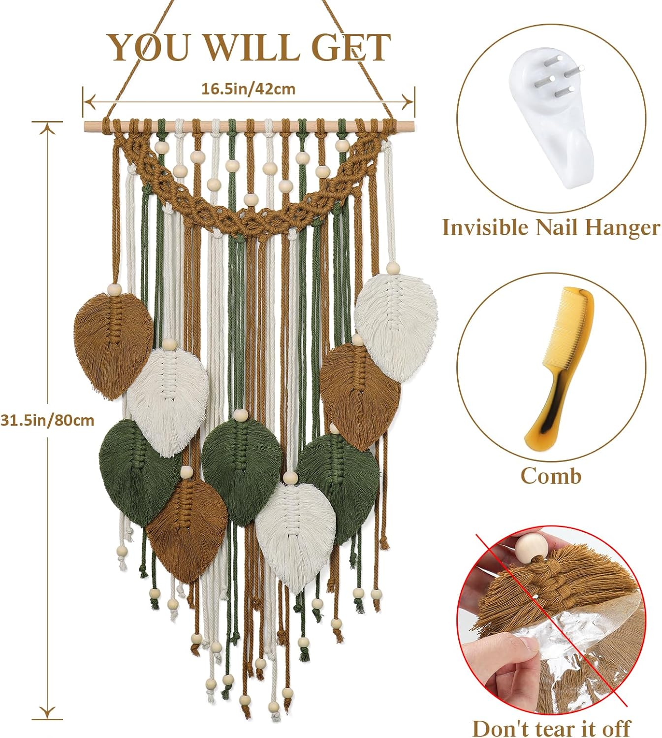 【Perfect Size】The perfect size 16.5”x31.5”(42X80cm) is a great fit for your wall. The leaves macrame wall hanging is the perfect choice to add a natural and artistic touch to any space. It can bring high-quality texture and harmonious atmosphere to your room without any other decorations.