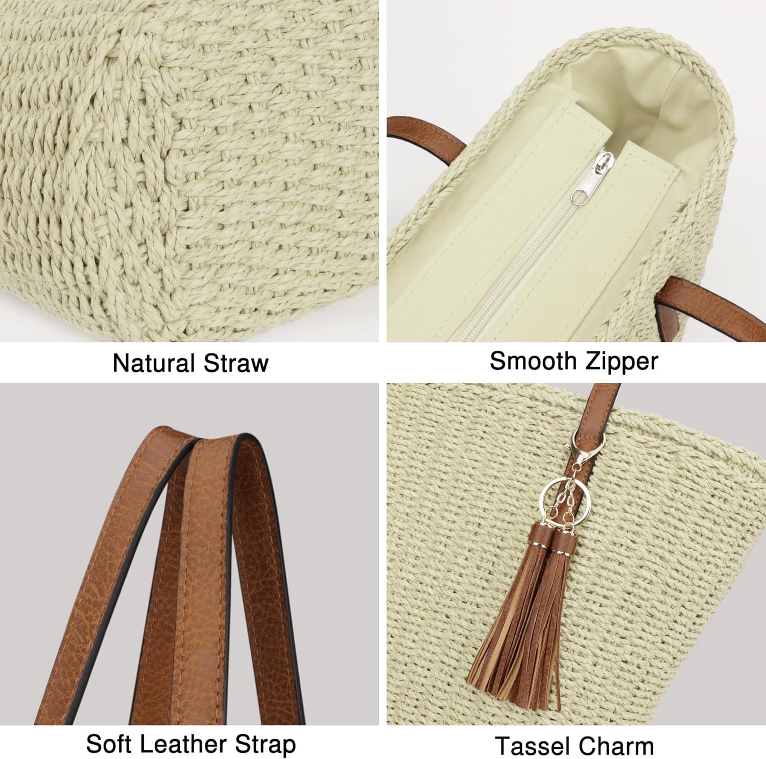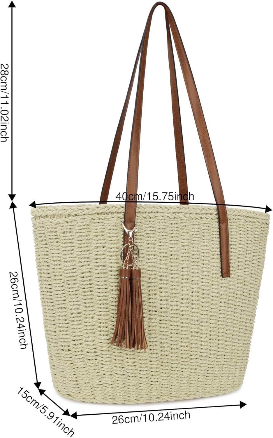 Womens Large Straw Tote Bag Handmade Woven Shoulder Handbag Summer Beach Purse with TasselWomens Large Straw Tote Bag Handmade Woven Shoulder Handbag Summer Beach Purse with Tassel