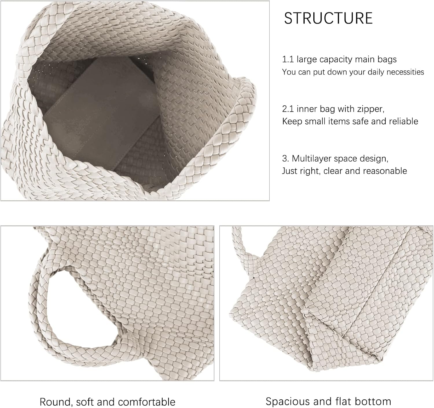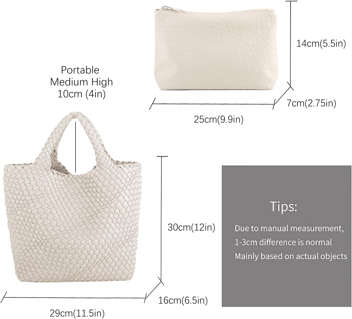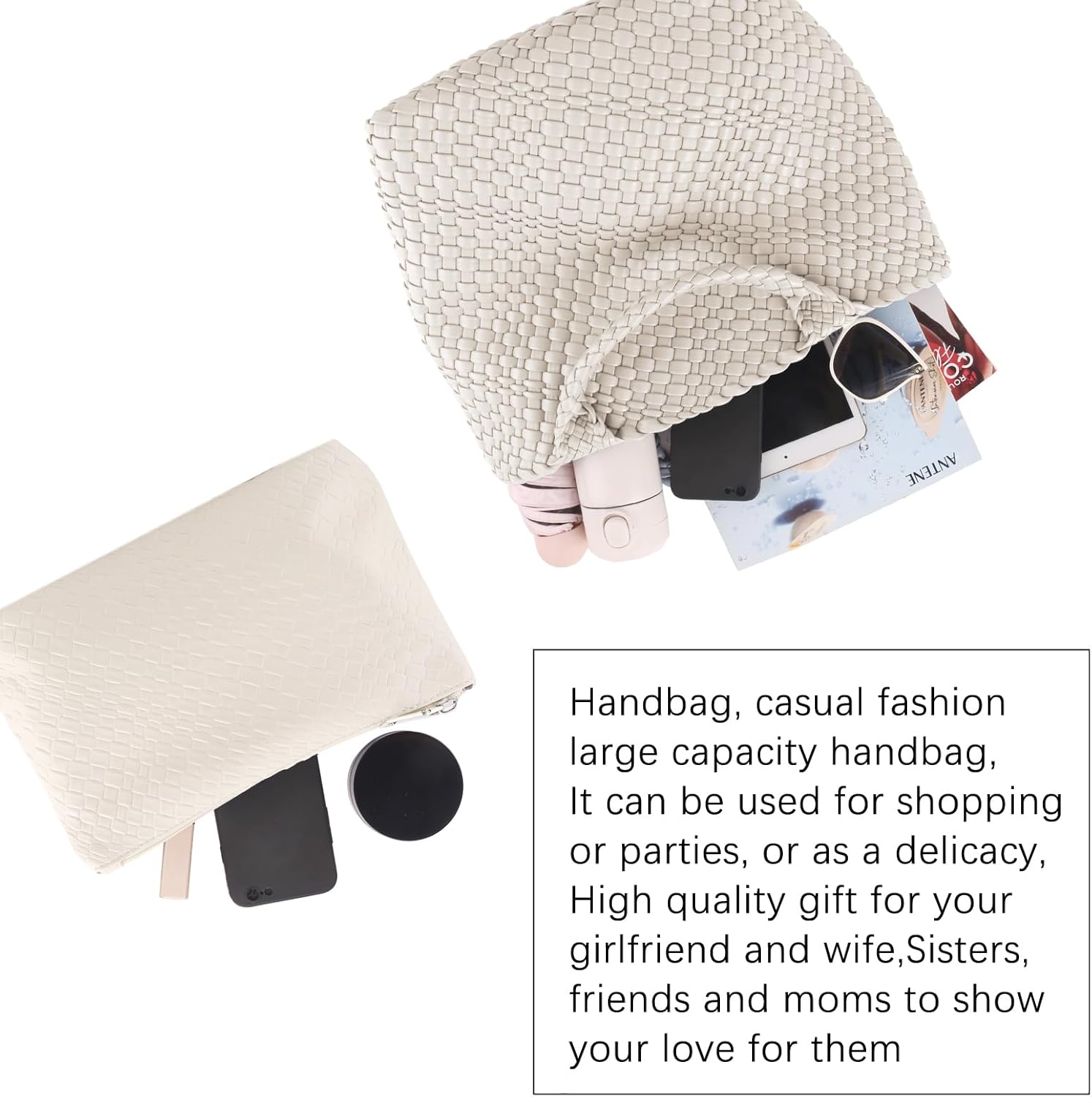 Women’s Vegan Leather Tote Bag – Handmade Woven Beach Bag, Travel Handbag with Purse & Top Handle Hobo Tote
