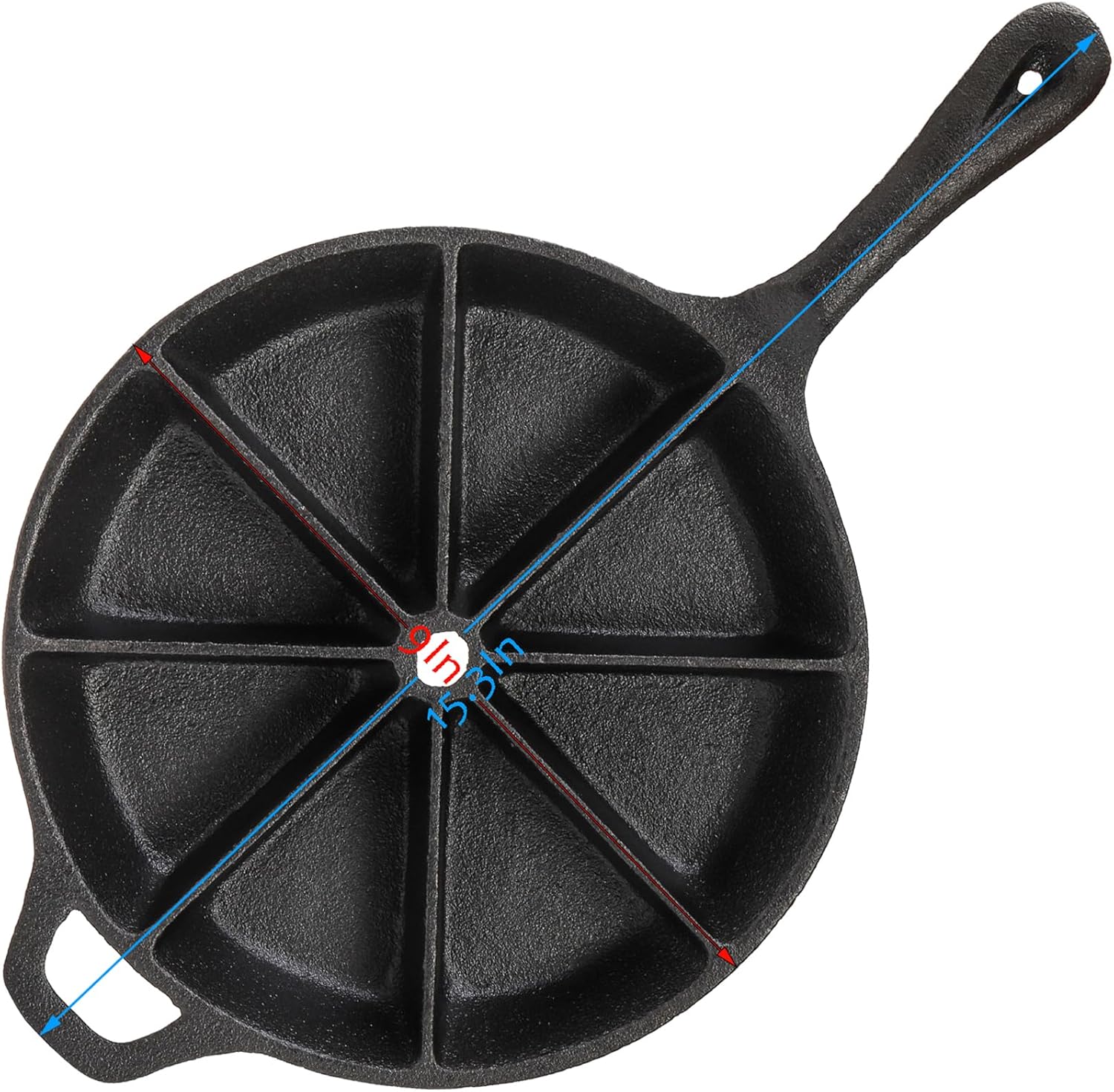 Cast Iron Wedge Pan, Round Corn Bread Skillet, 8-edges Biscuit Pan Cake Pan with Handle for Scones, Corn Stick Pan, Muffins, Cupcakes and Brownies