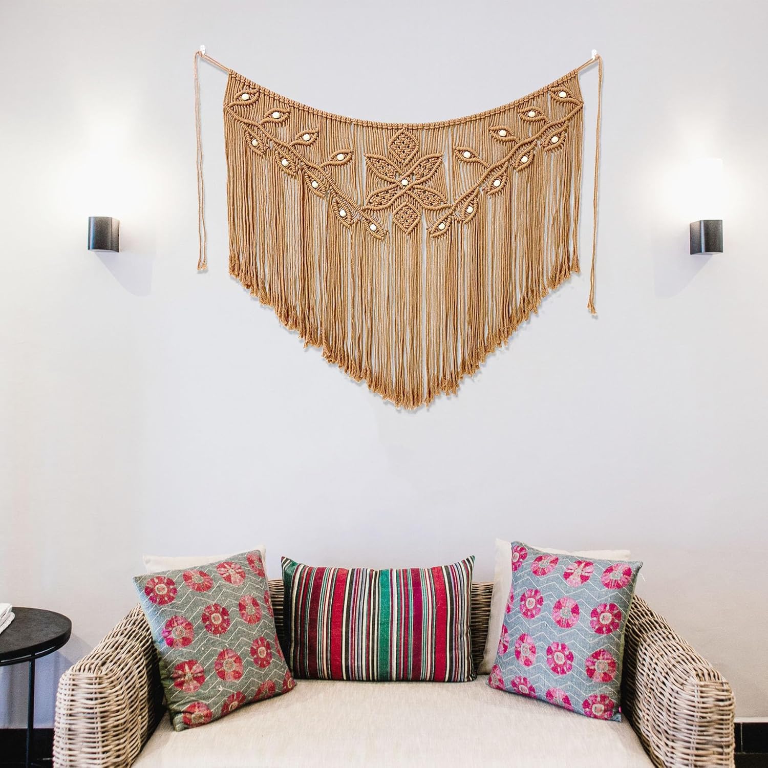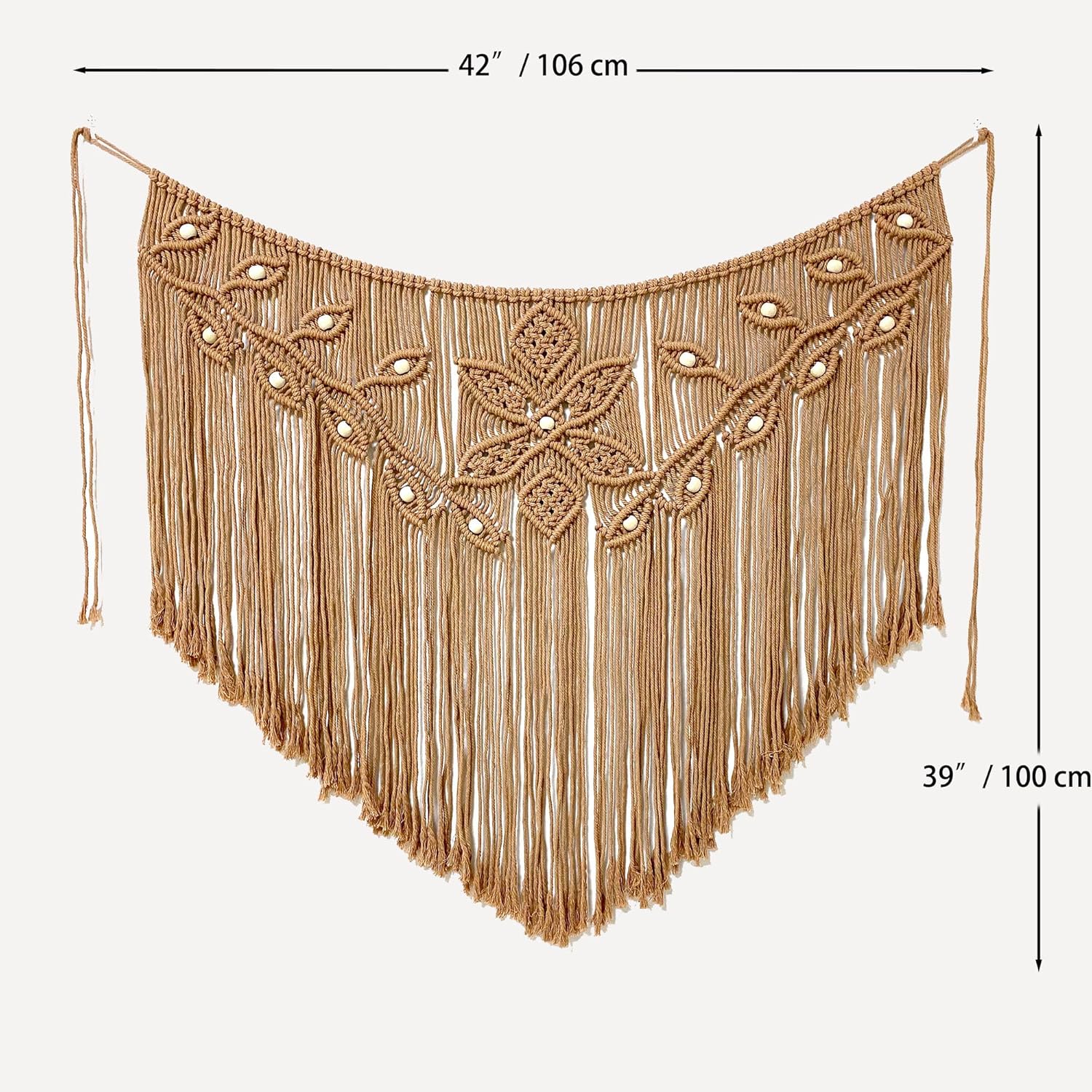 Macrame Wall Hanging Size:39*31 inches and the hang size is about 42*39 inches ,you can adjust the size according to your need.