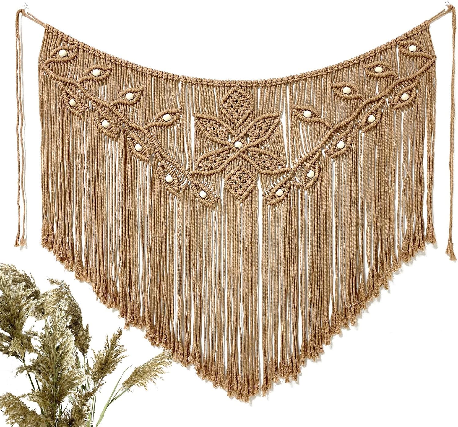 Youngeast Home Decor Leaf Shape Macrame Wall Hanging Woven Tapestry Bedroom Curtain Fringe Garland Banner Living Room Wall Decor Brown 39X31 inches