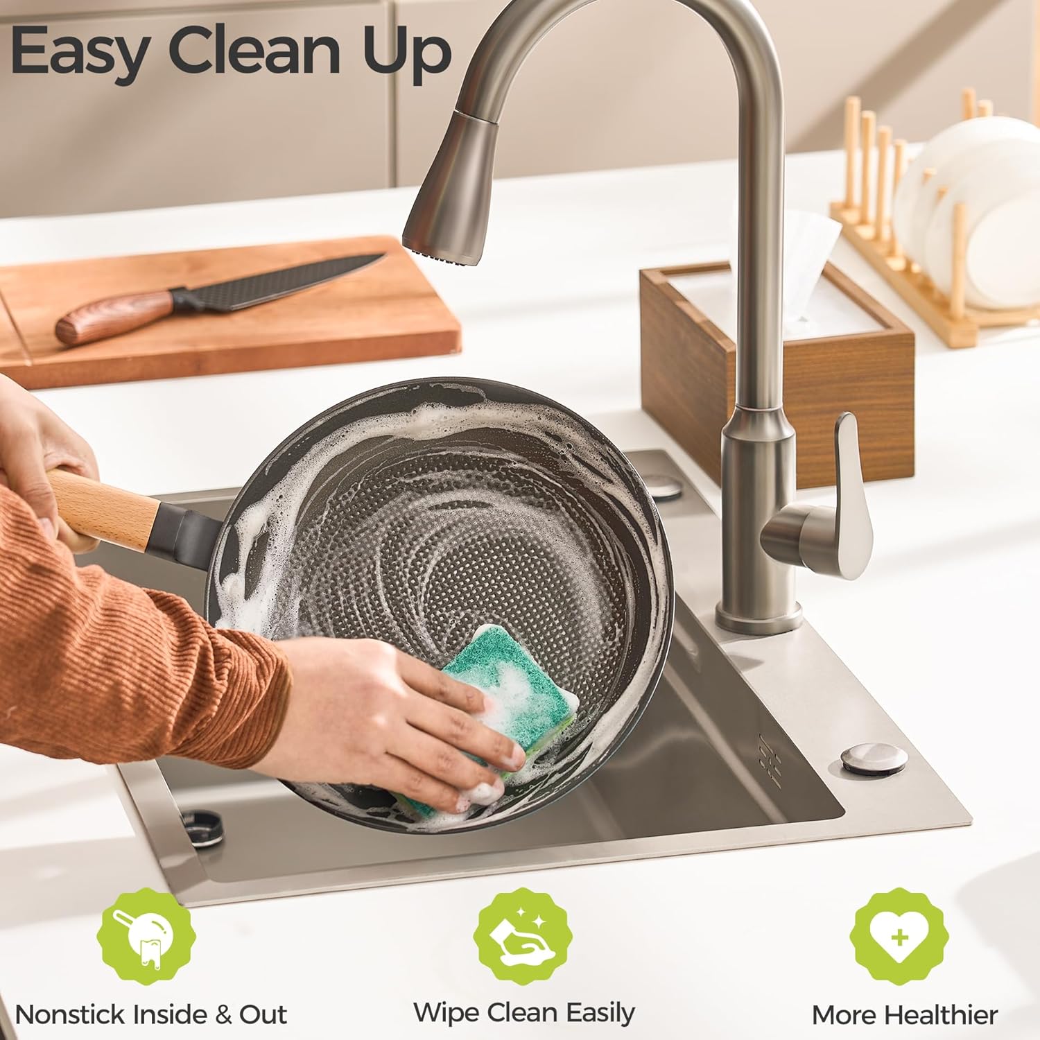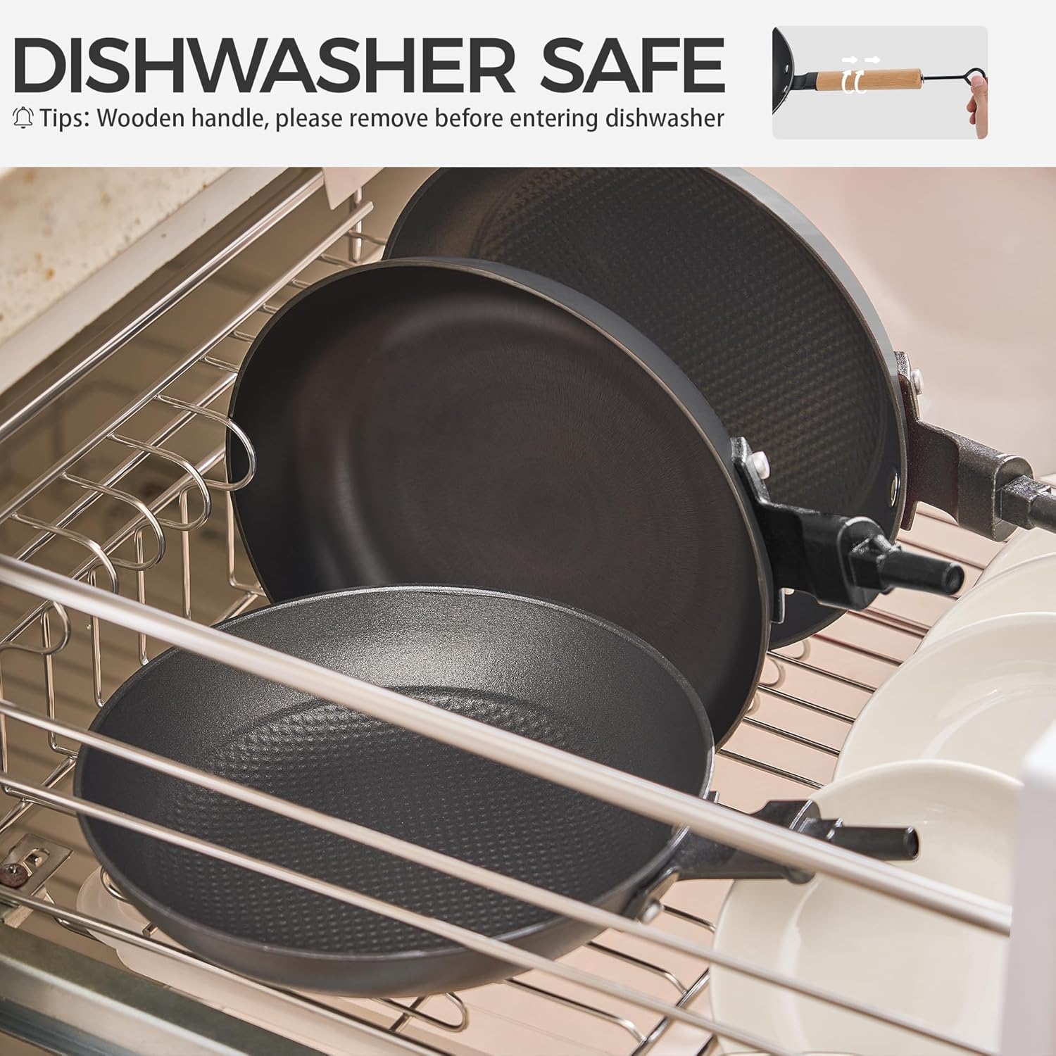 Ergonomic Wooden Handle:Designed with an ergonomic, detachable wooden handle, the YUTANN skillet stays cool to the touch, preventing burns during cooking. The removable handle also offers convenient storage and easy handling, making it ideal for busy kitchens where space is a premium.