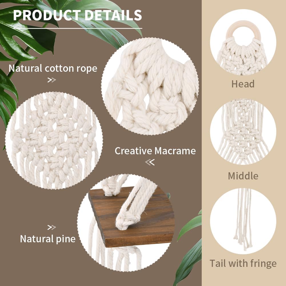 【DURABLE MATERIAL】The wall hanging shelf is made of wood and cotton blend handmade braided macrame, safe and environmental protection, strong laod bearing, sturdy and durable, smooth edges will not hurt your hands, not easy to break, long service time.