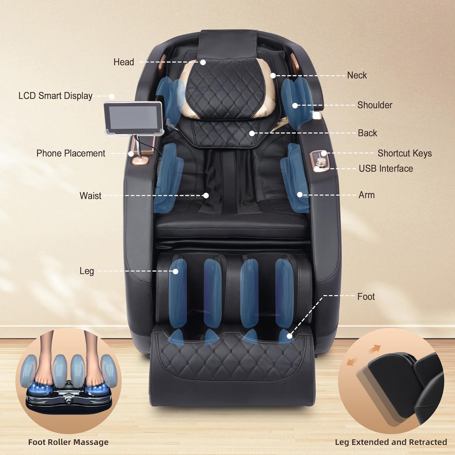 2025 4D Massage Chair Full Body, Zero Gravity Massage Chair with SL-Track & Heating, Massage Shiatsu Recliner Chair with Smart Voice Control, Touchable Screen, Airbags, Foot Rollers (BLACK)